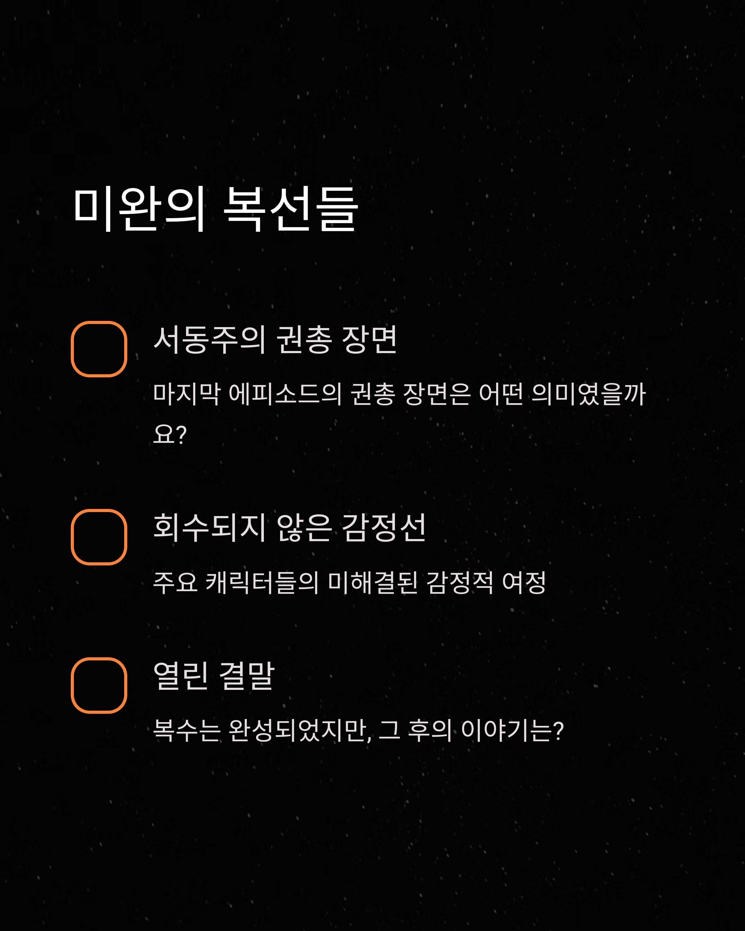 • 차선우는 끝까지 어떤 역할이었나? → 떡밥만 흘림
