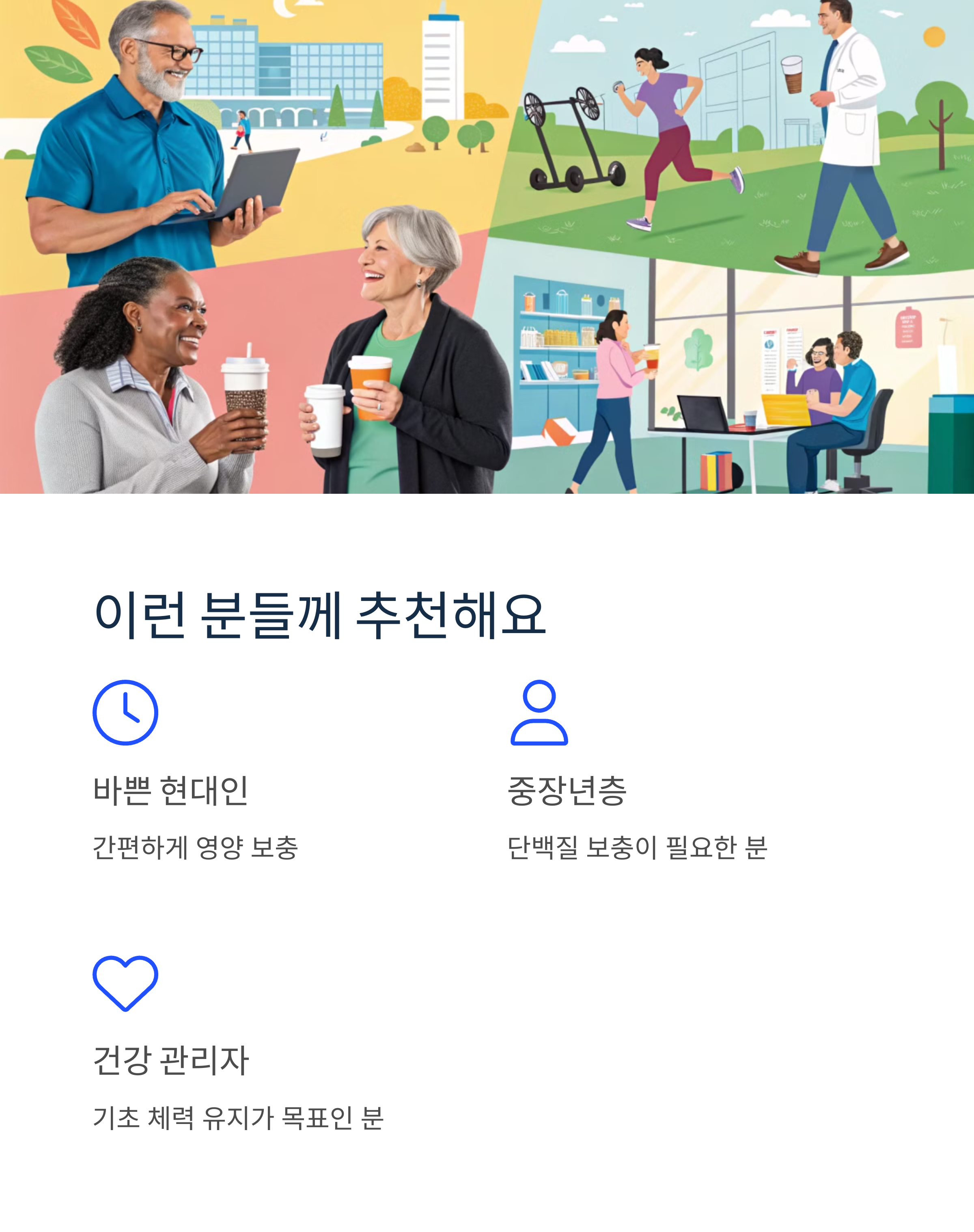 운동을 하지 않더라도 단백질은 면역력, 근육 유지, 에너지 대사 등에 꼭 필요해요. 특히 중장년층은 단백질 부족이 건강 저하로 이어질 수 있죠.