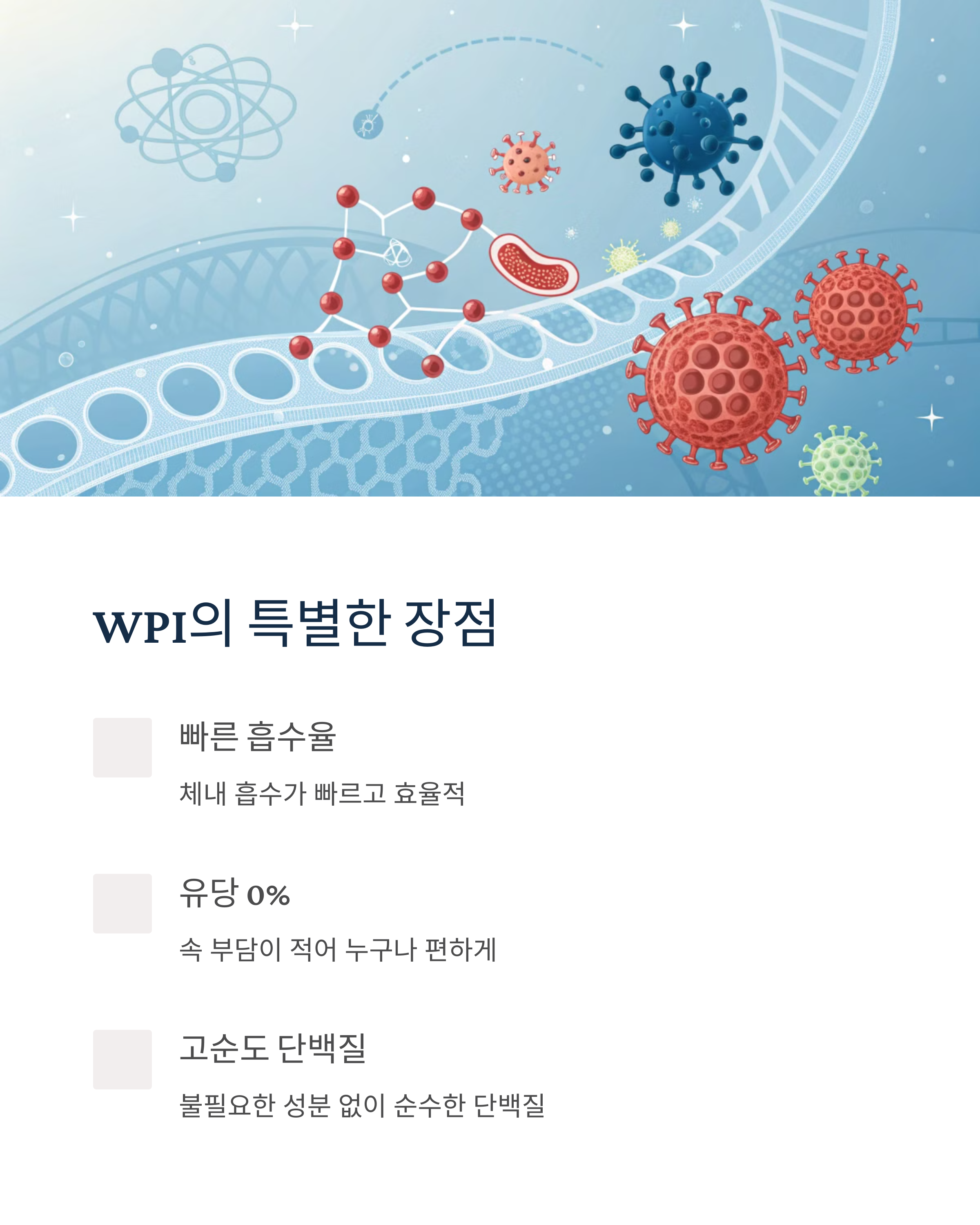 분리유청단백질(WPI)은 지방과 유당이 거의 제거된 고순도 단백질로, 흡수율이 빠르고 소화가 쉬운 게 특징이에요. 일반 단백질보다 순도가 높아 몸에 부담이 덜하죠.