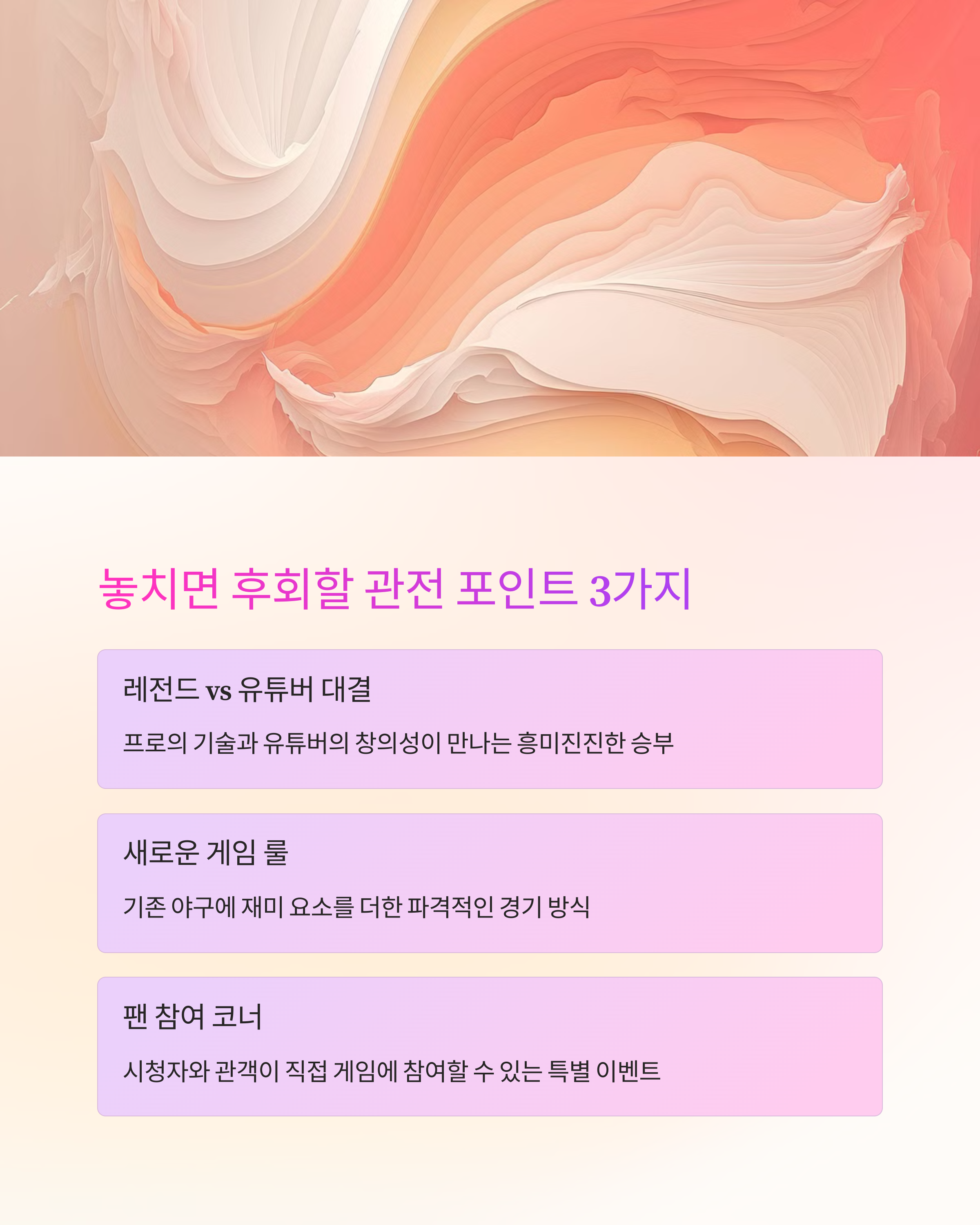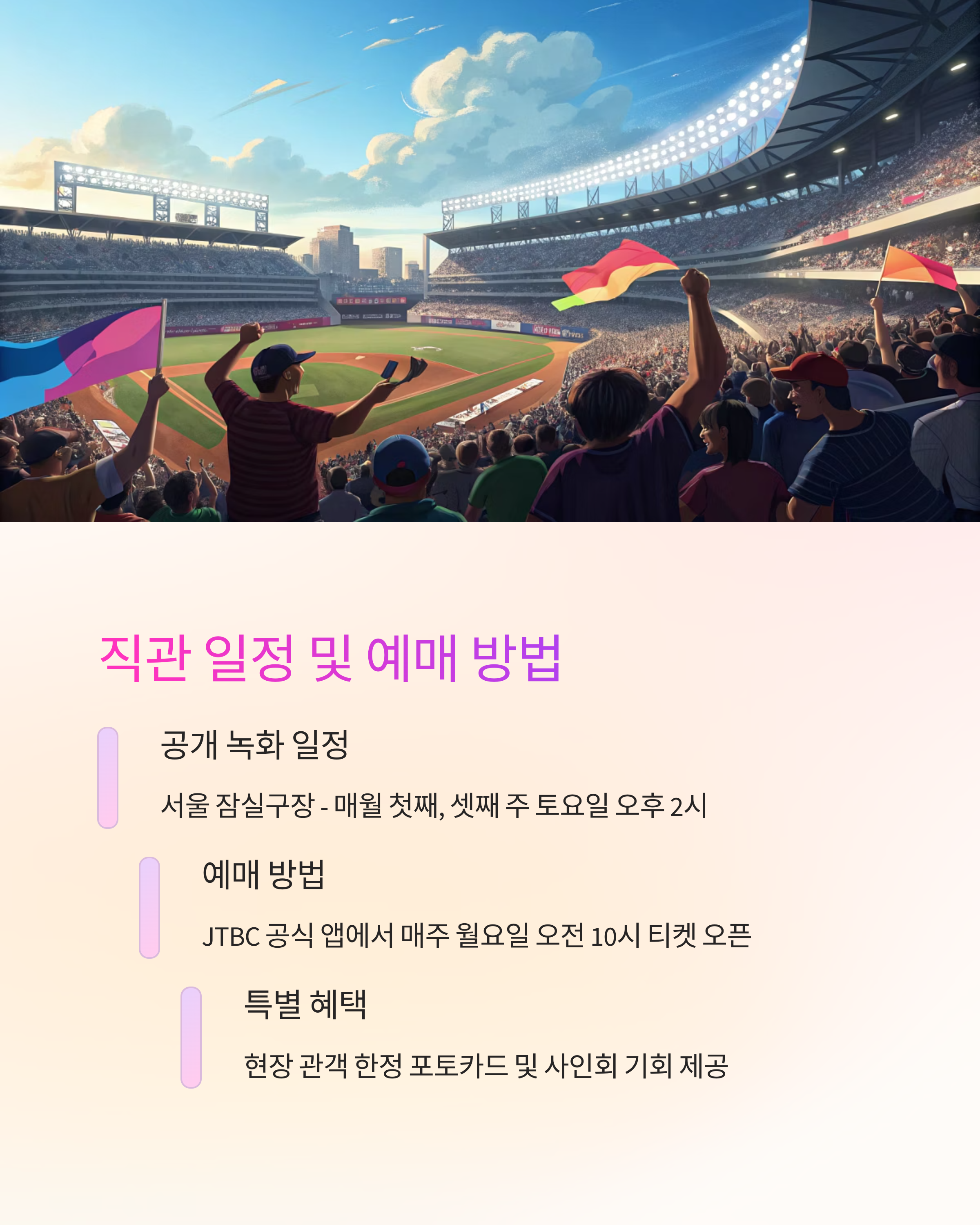 다가오는 6월 직관 경기부터는 현장 이벤트도 강화된다고 하니, 오프라인에서의 감동도 기대해보셔도 좋아요! 다음 글에서는 선수별 프로필과 예능 활약상을 집중 조명해볼게요. 놓치지 마세요!