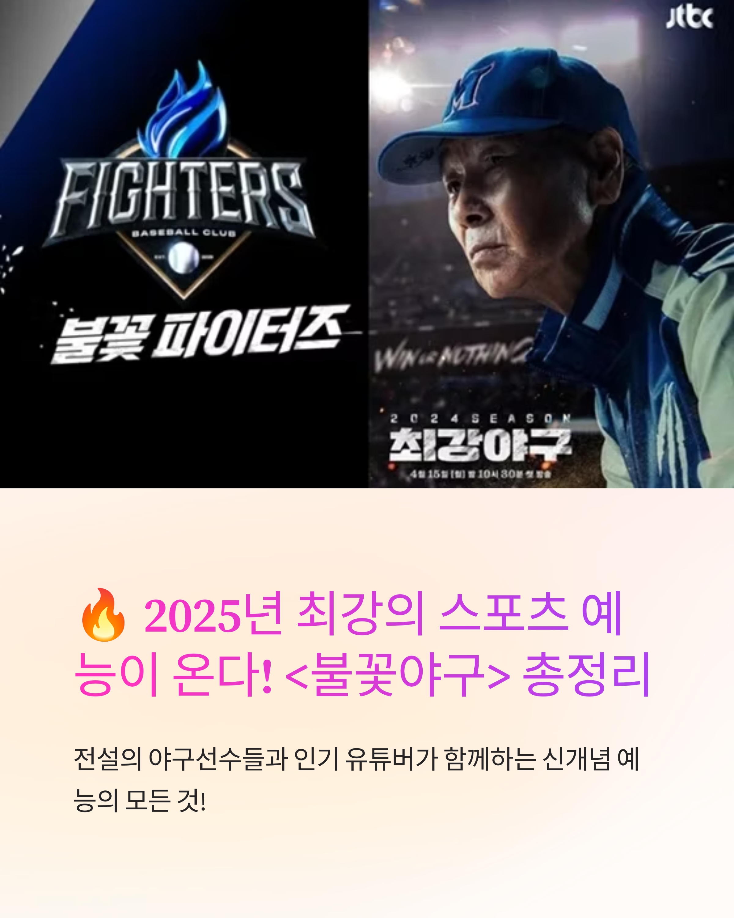 “이번엔 불꽃이다!” 최강야구의 뒤를 잇는 JTBC 신작 <불꽃야구>, 레전드 선수들의 귀환과 화려한 캐스팅으로 2025년 예능계를 뜨겁게 달구고 있습니다.