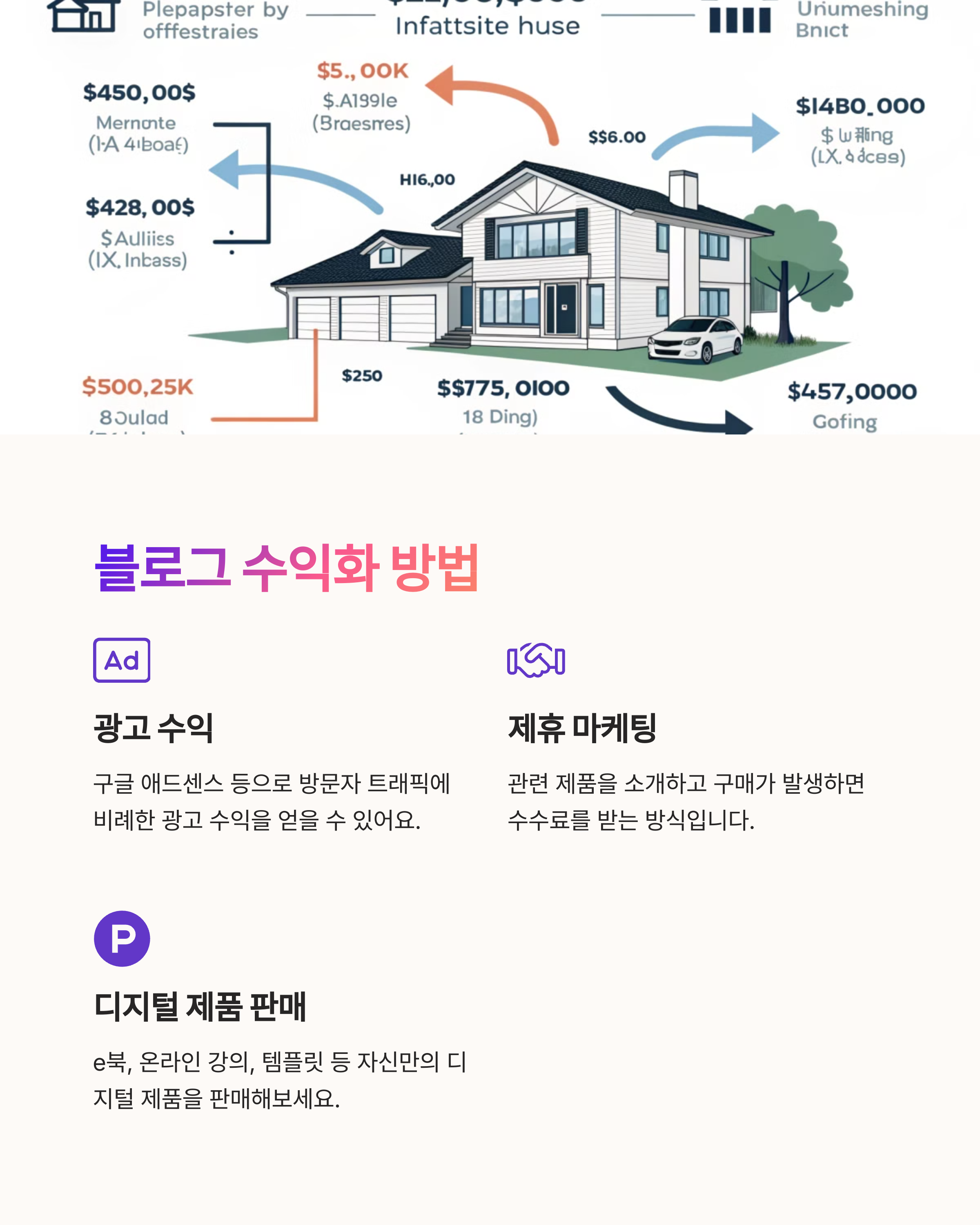 또한, 초기 투자 비용이 거의 들지 않는다는 점도 장점입니다. 도메인과 호스팅을 구매하는 것 외에는 특별한 비용이 필요하지 않으며, 블로그 운영을 통해 광고 수익, 제휴 마케팅, 디지털 제품 판매 등 다양한 방식으로 수익을 창출할 수 있습니다. 무엇보다도, 자신이 좋아하는 주제를 다루면서 수익을 얻을 수 있다는 점이 블로그 수익화의 가장 큰 매력이 아닐까요?