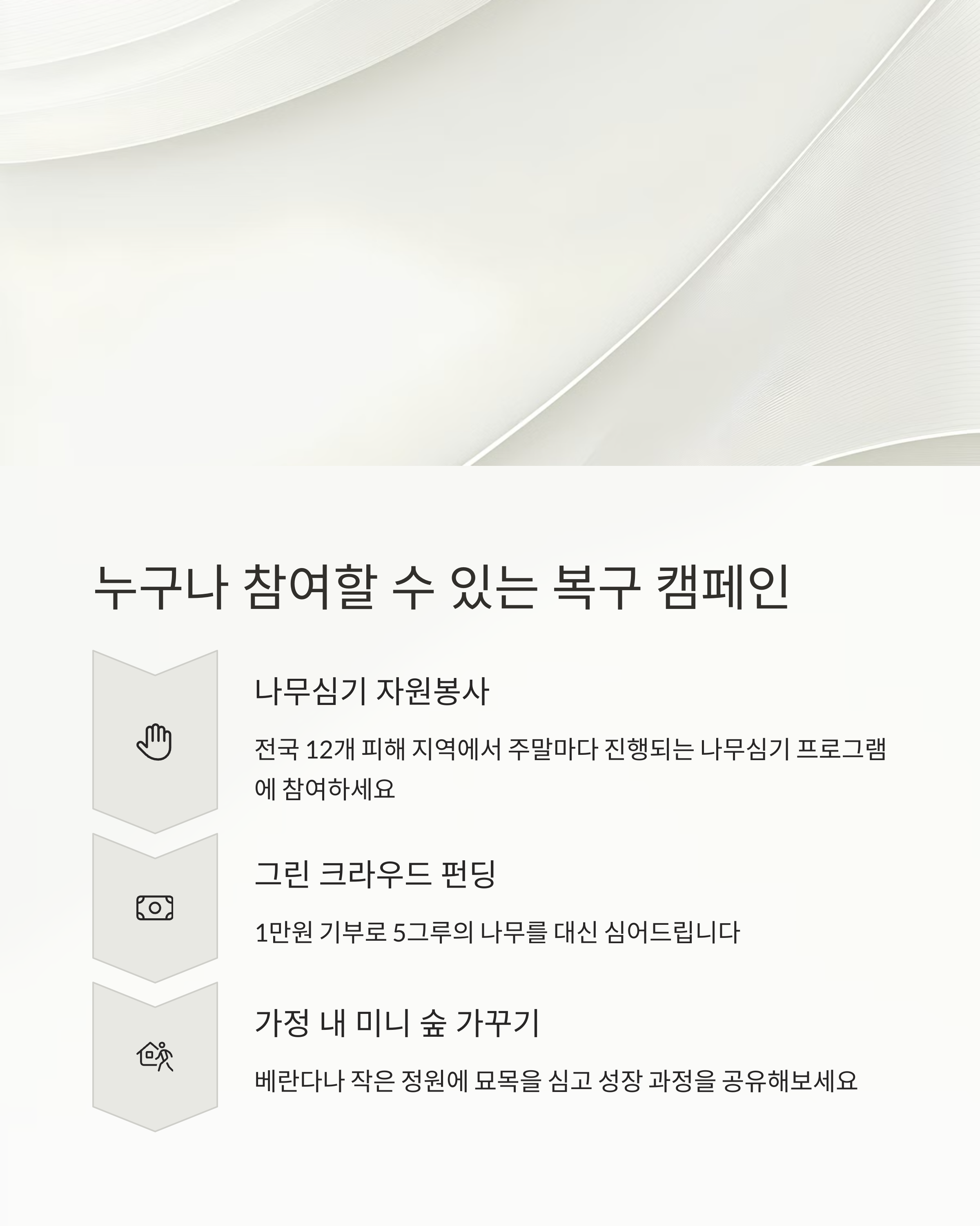 잿더미 속에서도 나무는 자랍니다. 2025년 식목일, 당신의 한 그루가 희망의 숲이 됩니다.