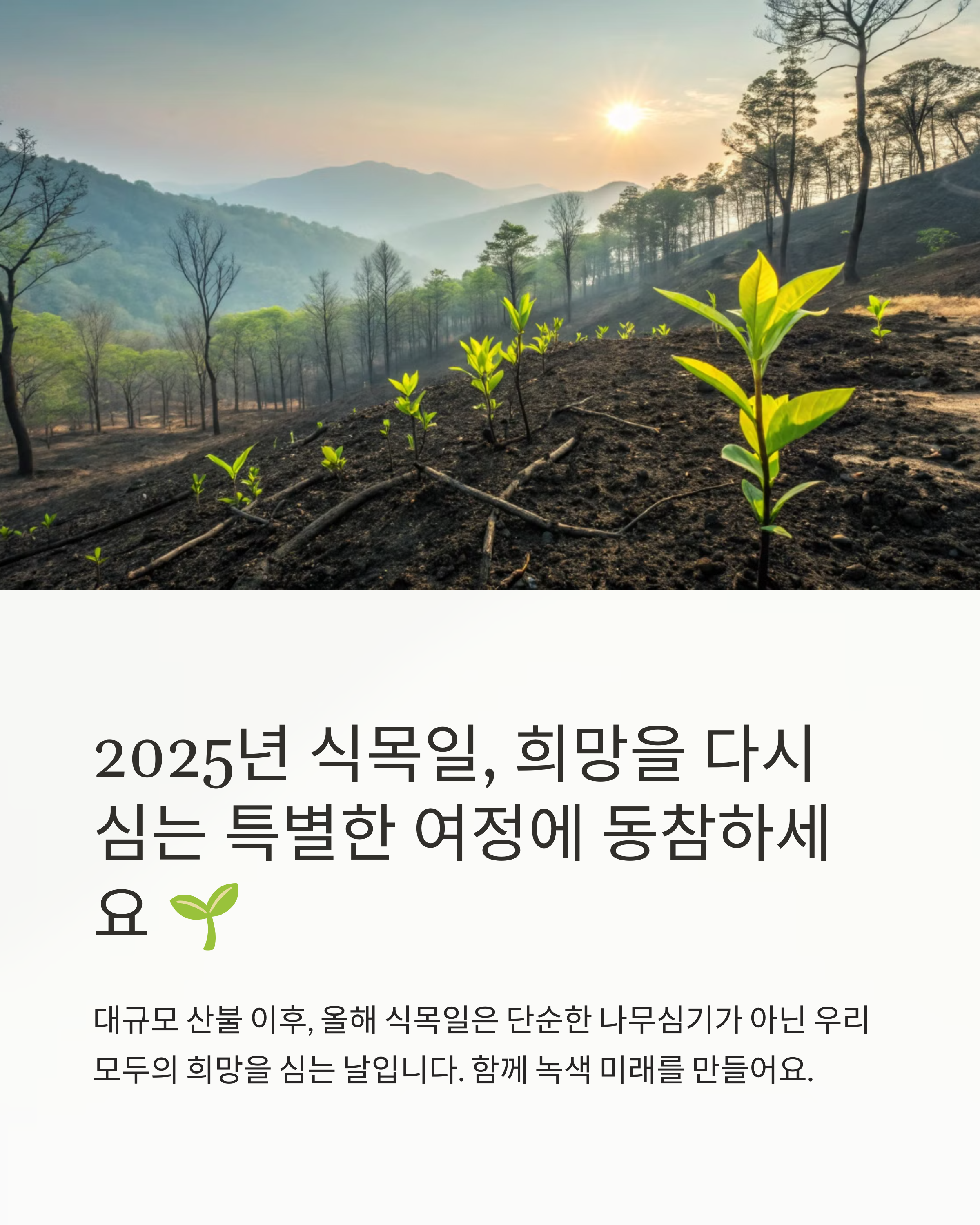잿더미 속에서도 나무는 자랍니다. 2025년 식목일, 당신의 한 그루가 희망의 숲이 됩니다.