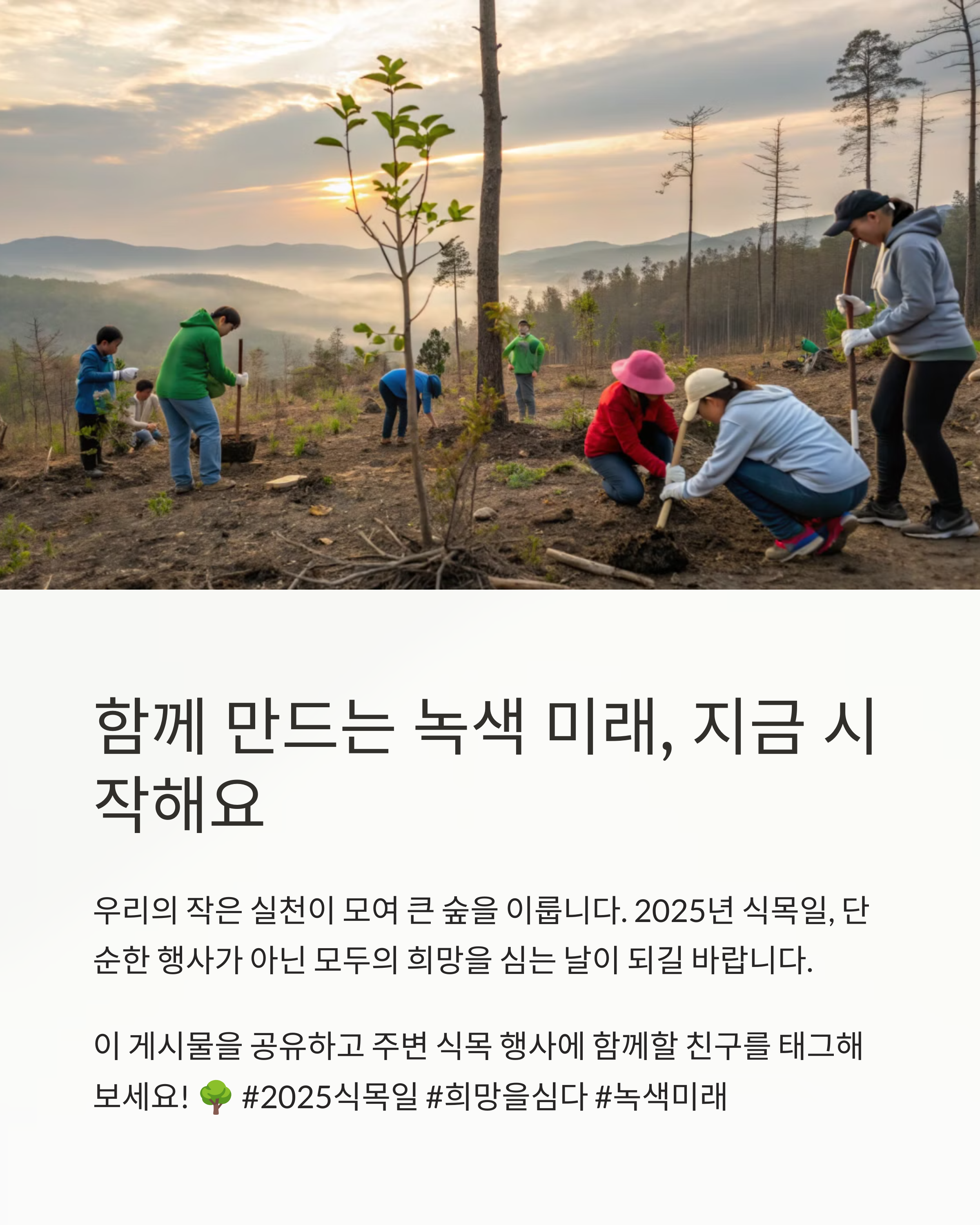 🌍 SNS에 #2025식목일 해시태그와 함께 나무심는 모습 공유하기