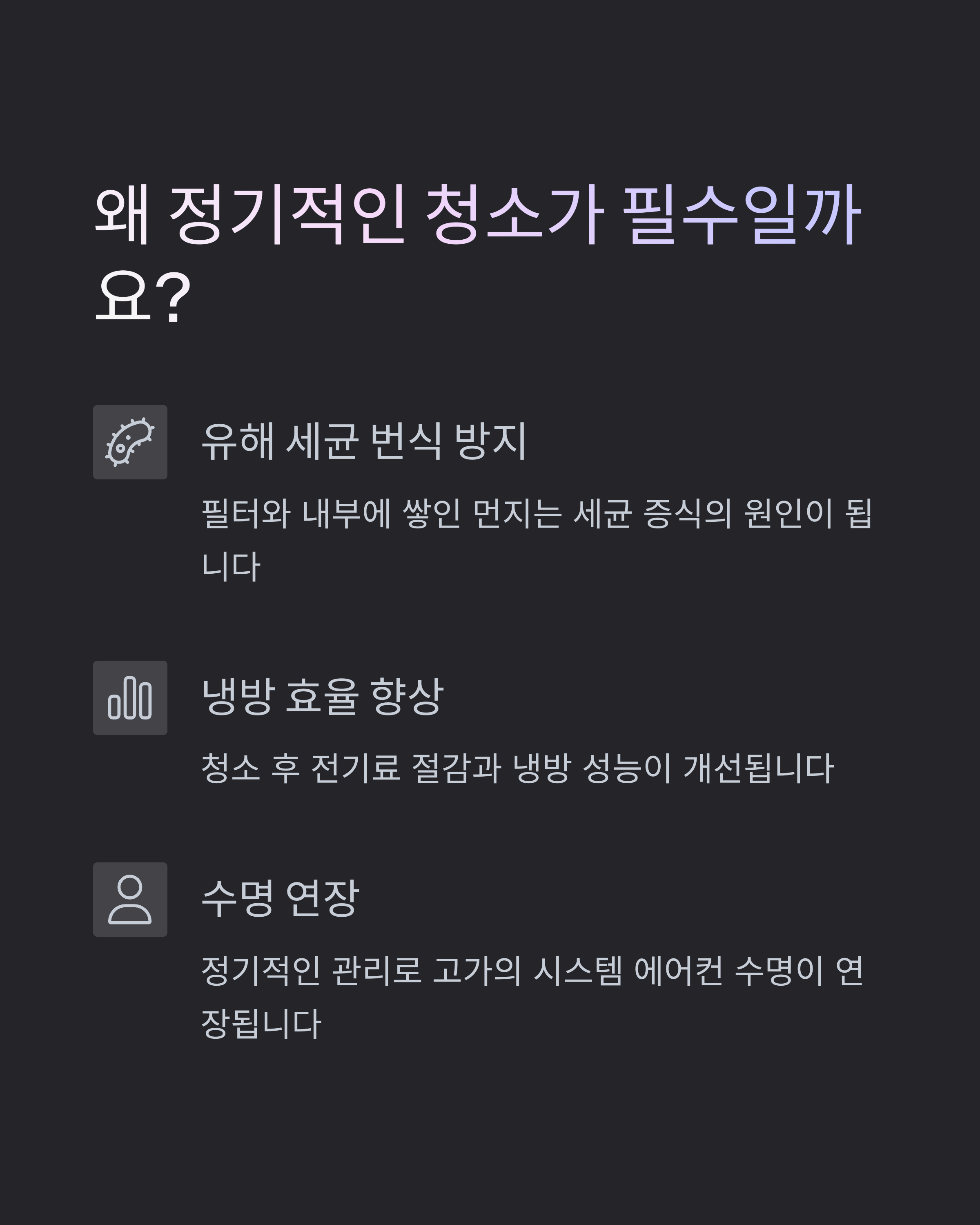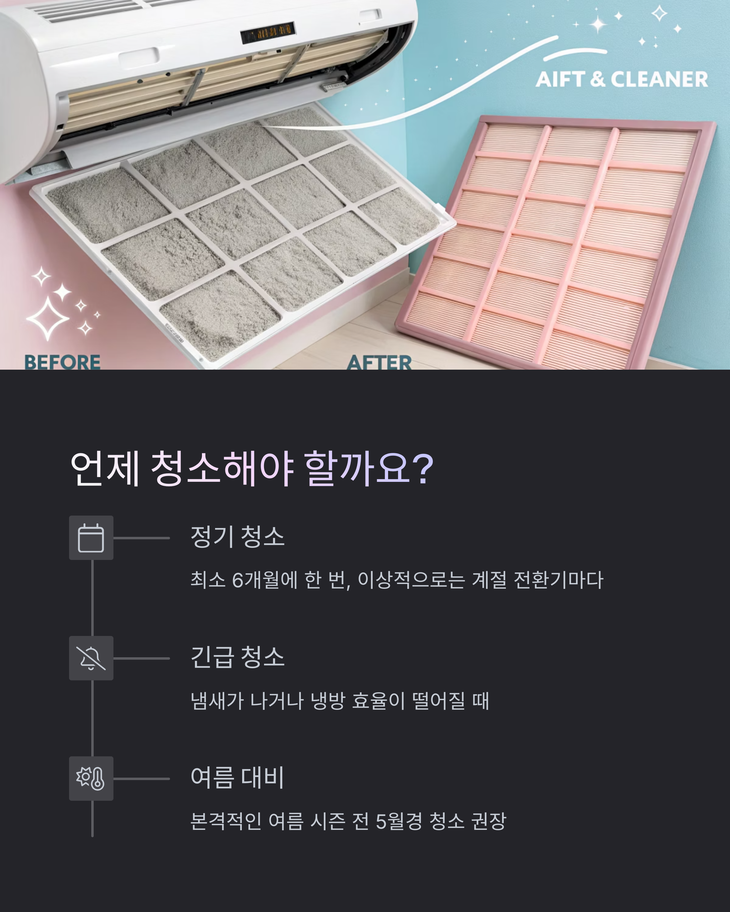- 앞으로도 정기적인 유지보수를 통해 냉방 효율과 공기 질을 관리하는 것이 중요해질 것입니다.