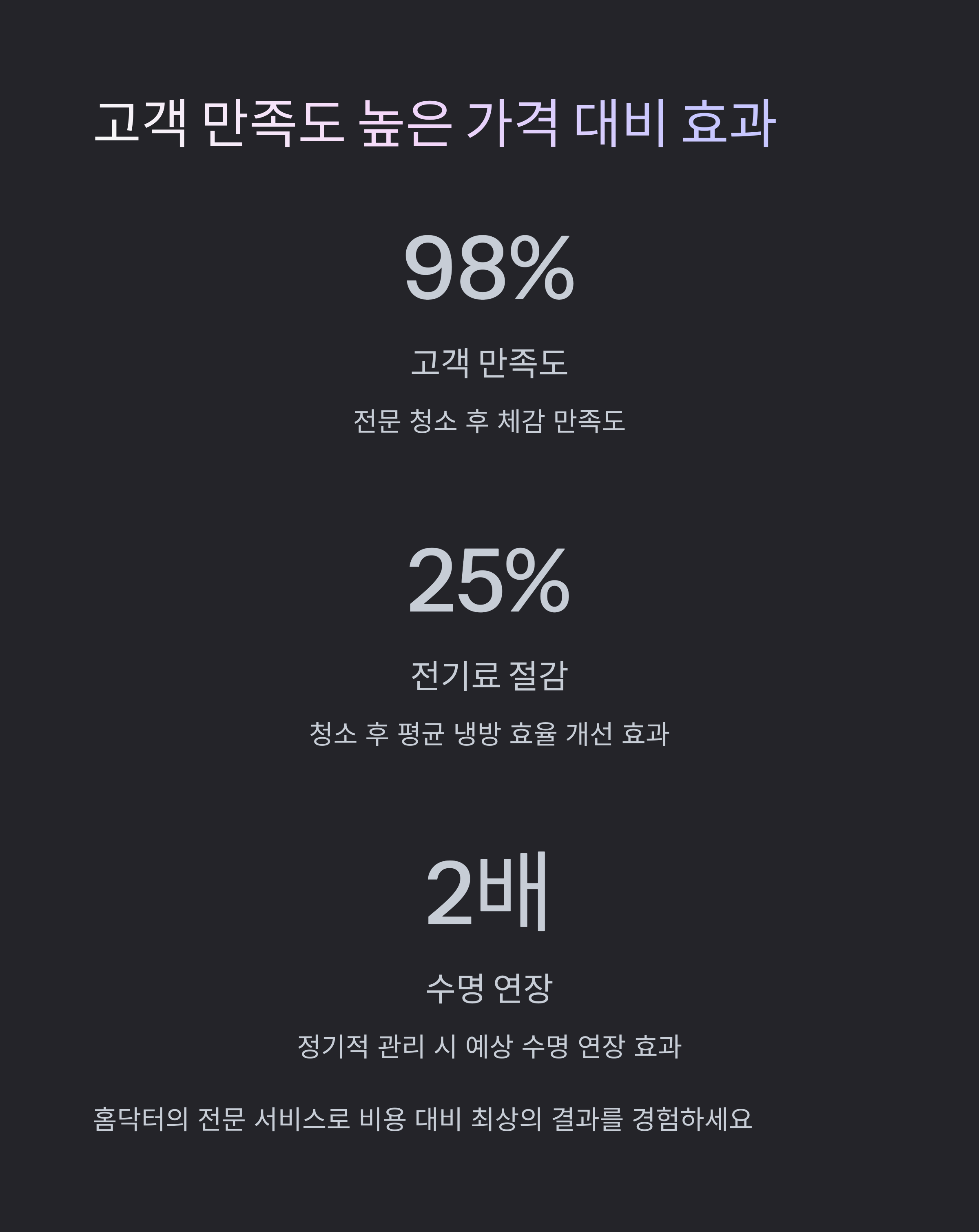 | 실외기 청소 | 에너지 효율을 위해 실외기 세척도 함께 추천 |