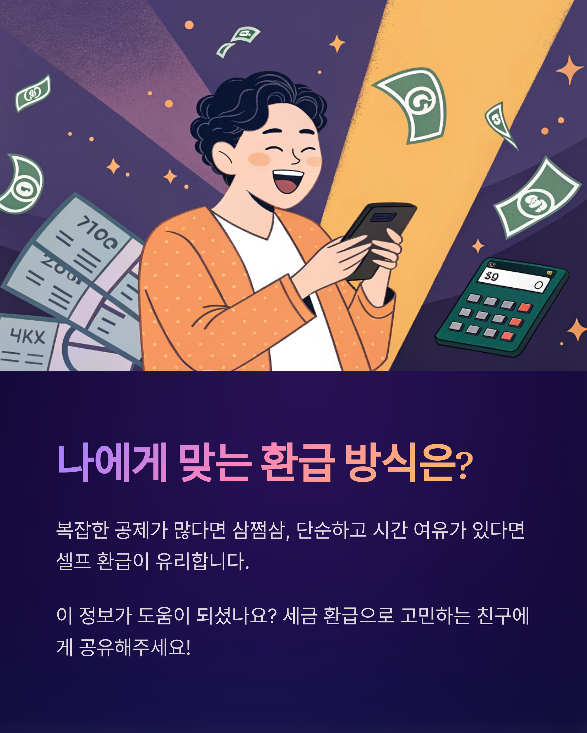 - 셀프 환급 방법도 숙지해 옵션으로 고려