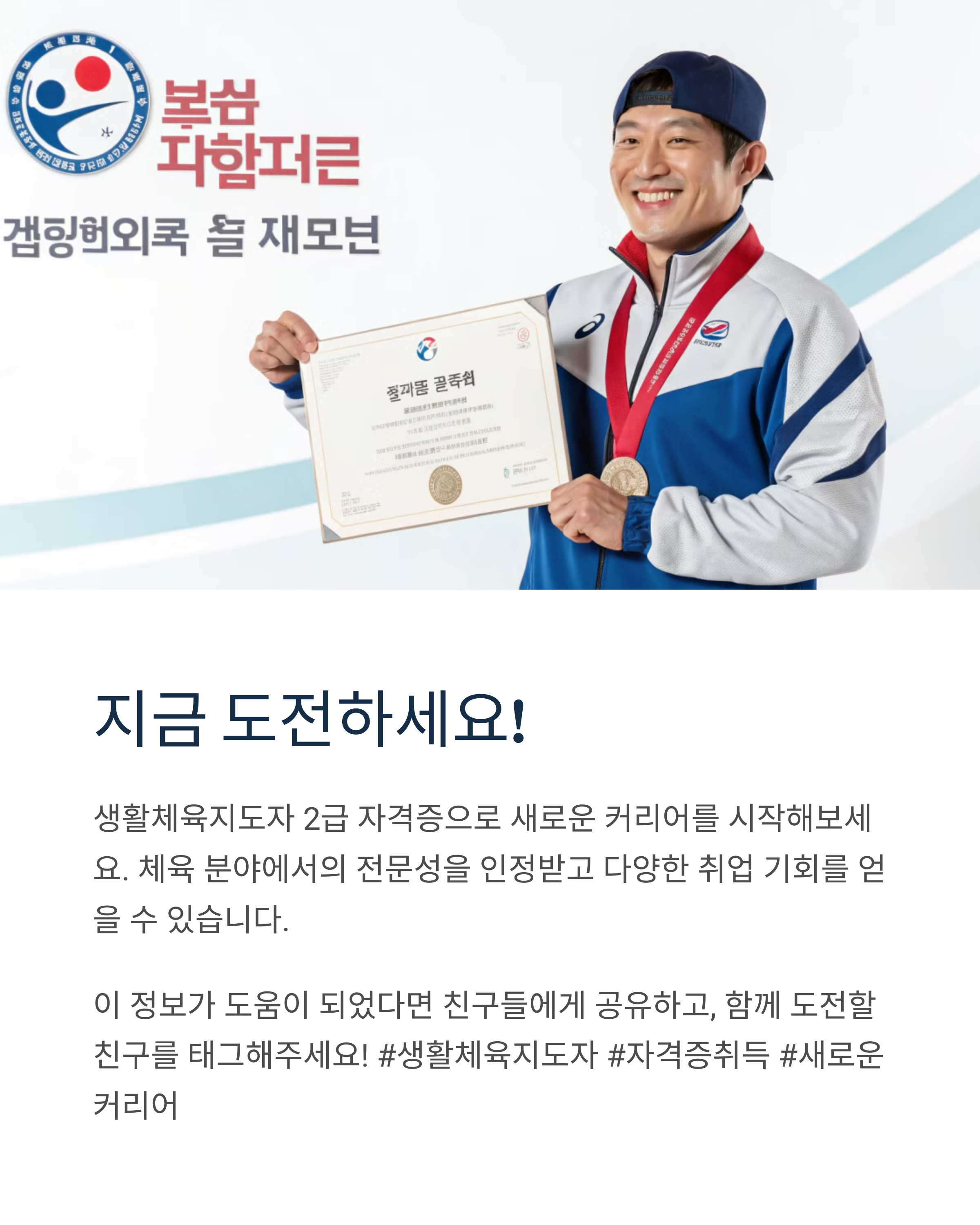 '이걸로 자격증도 딸 수 있을까?' 검색하다가 알게 된 게 바로 생활체육지도자 2급이에요.