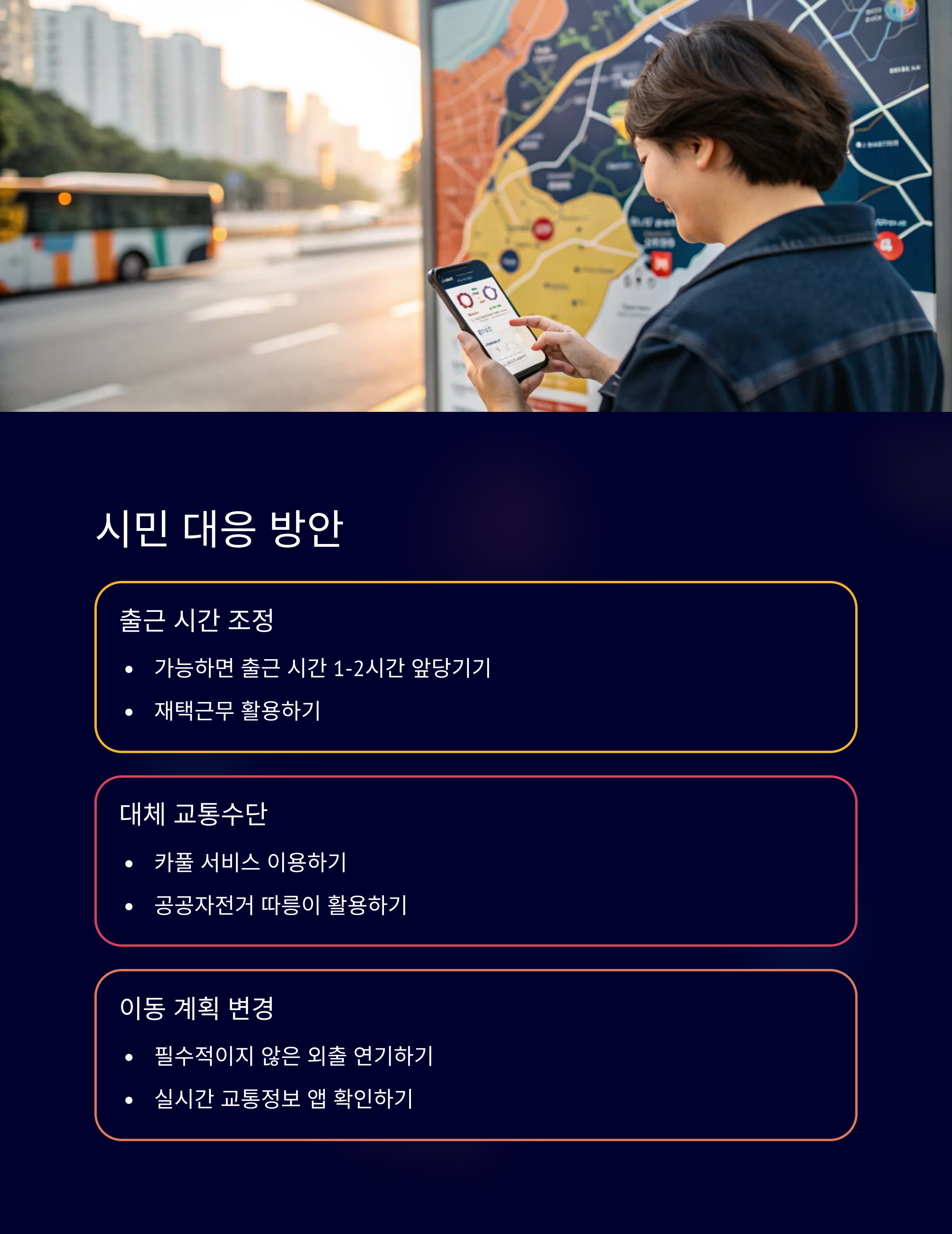 | 장기화 시 파장 | 서울 경제활동 위축 및 시민 불편 극대화 |