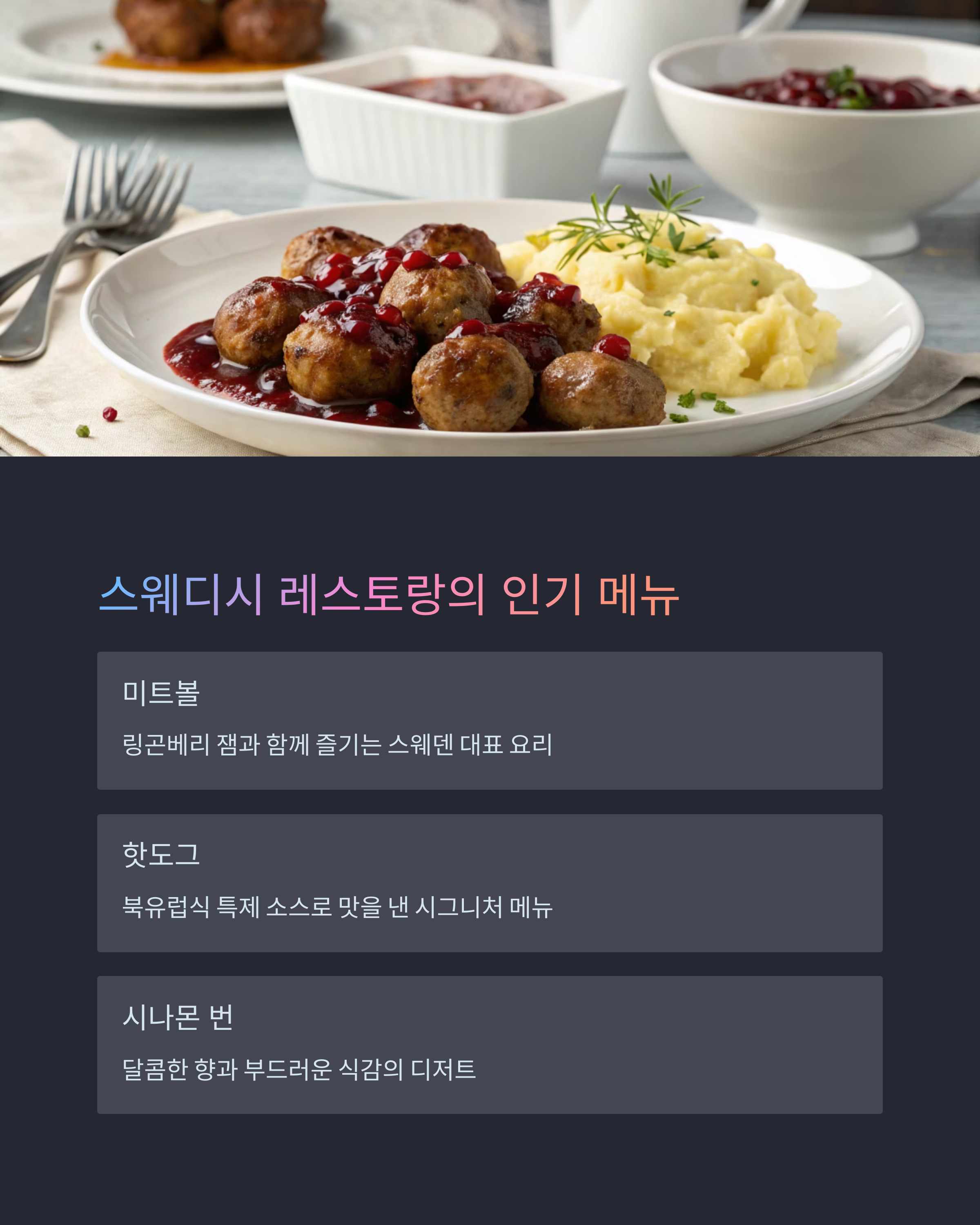 - 스웨디시 미트볼은 꼭 먹어봐야 함