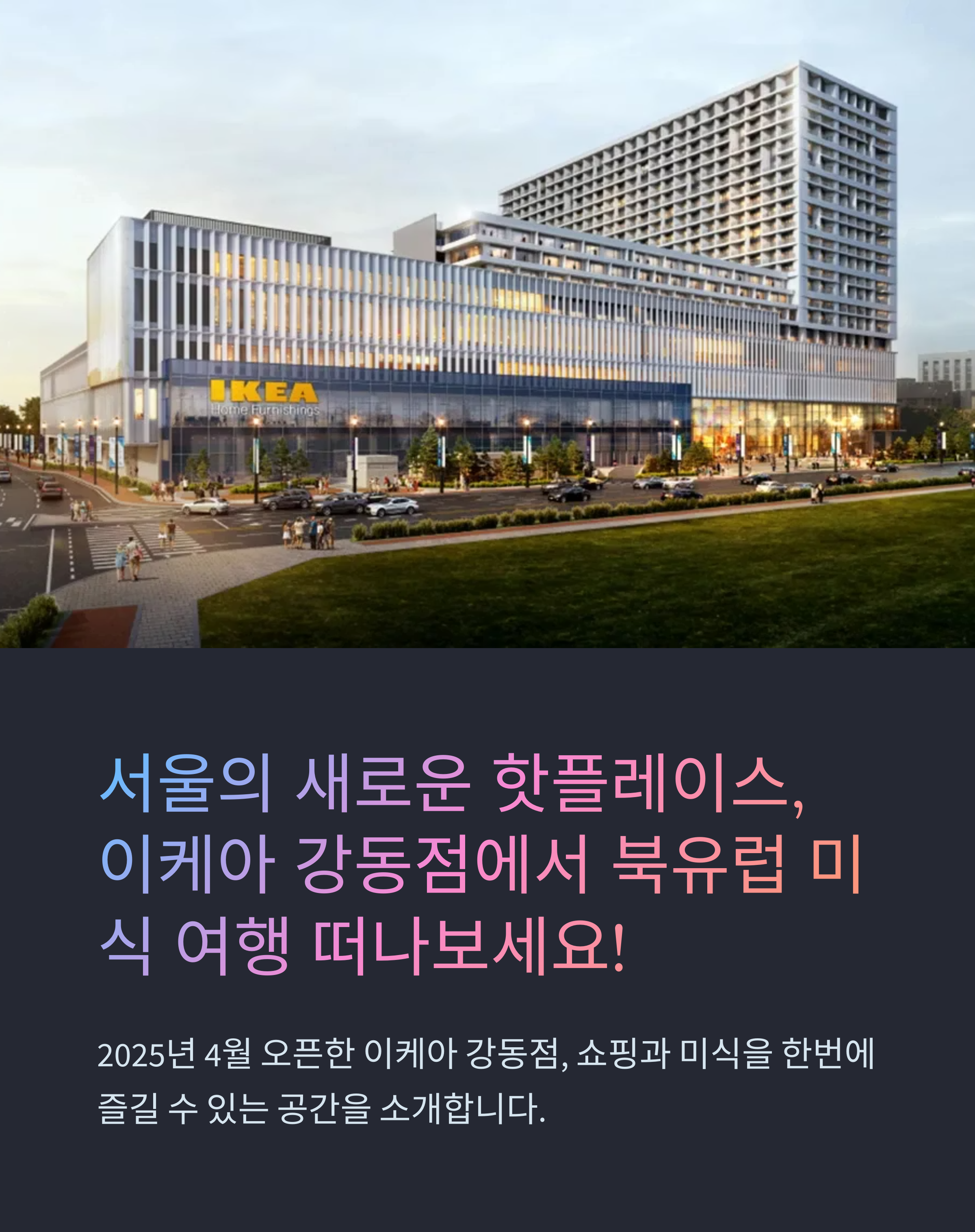 이케아 강동점은 단순한 쇼핑을 넘어 서울 도심에서 만나는 북유럽 라이프스타일의 새로운 기준이었어요. 특히 레스토랑과 비스트로는 식도락을 사랑하는 분들께 정말 강추드리고 싶습니다. 쇼핑 후 즐기는 북유럽 요리 한 끼, 정말 꿀조합이에요.