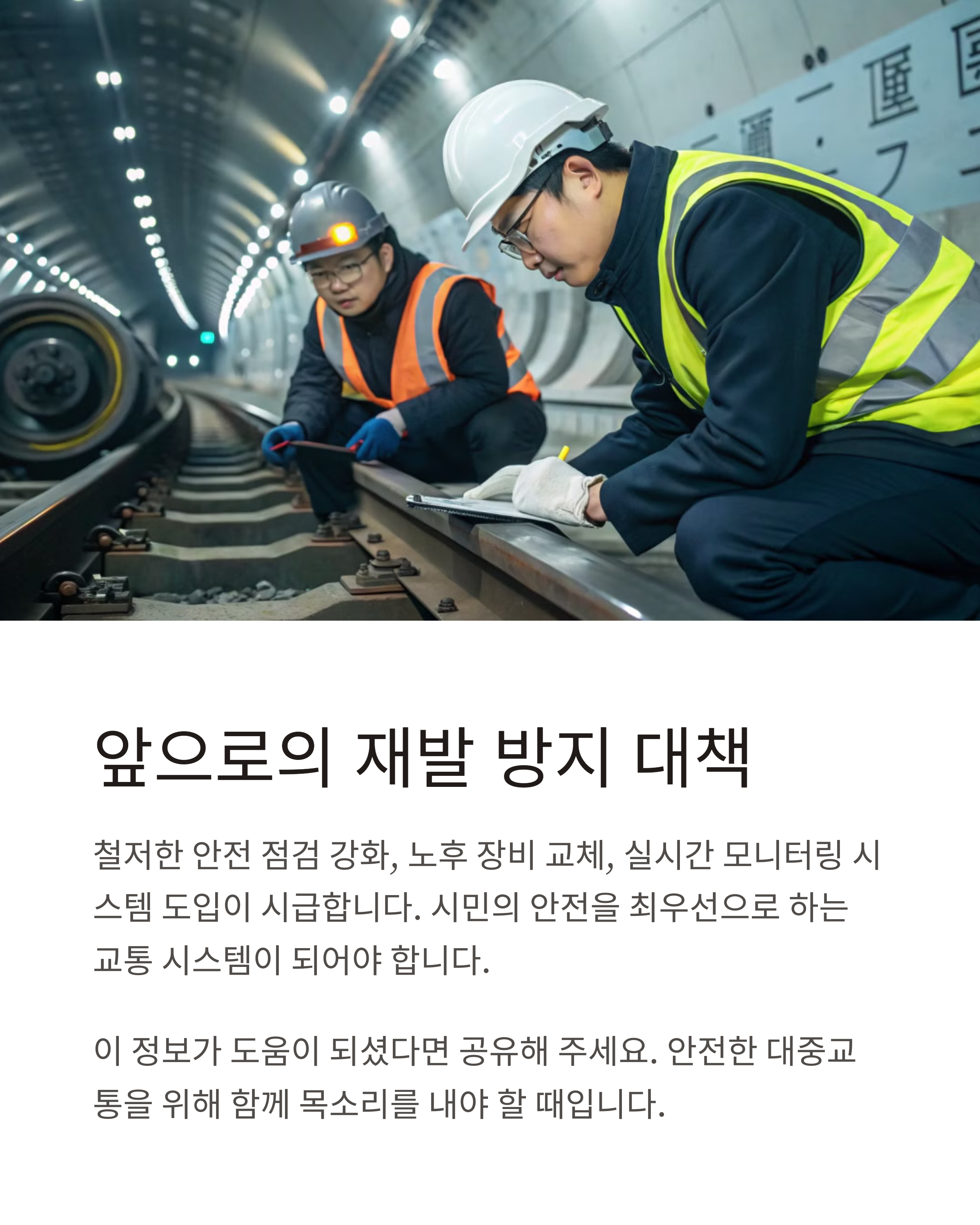 차량 노후 교체, AI 기반 모니터링 시스템 도입 등 근본적 안전 강화를 위한 방안이 논의 중입니다.