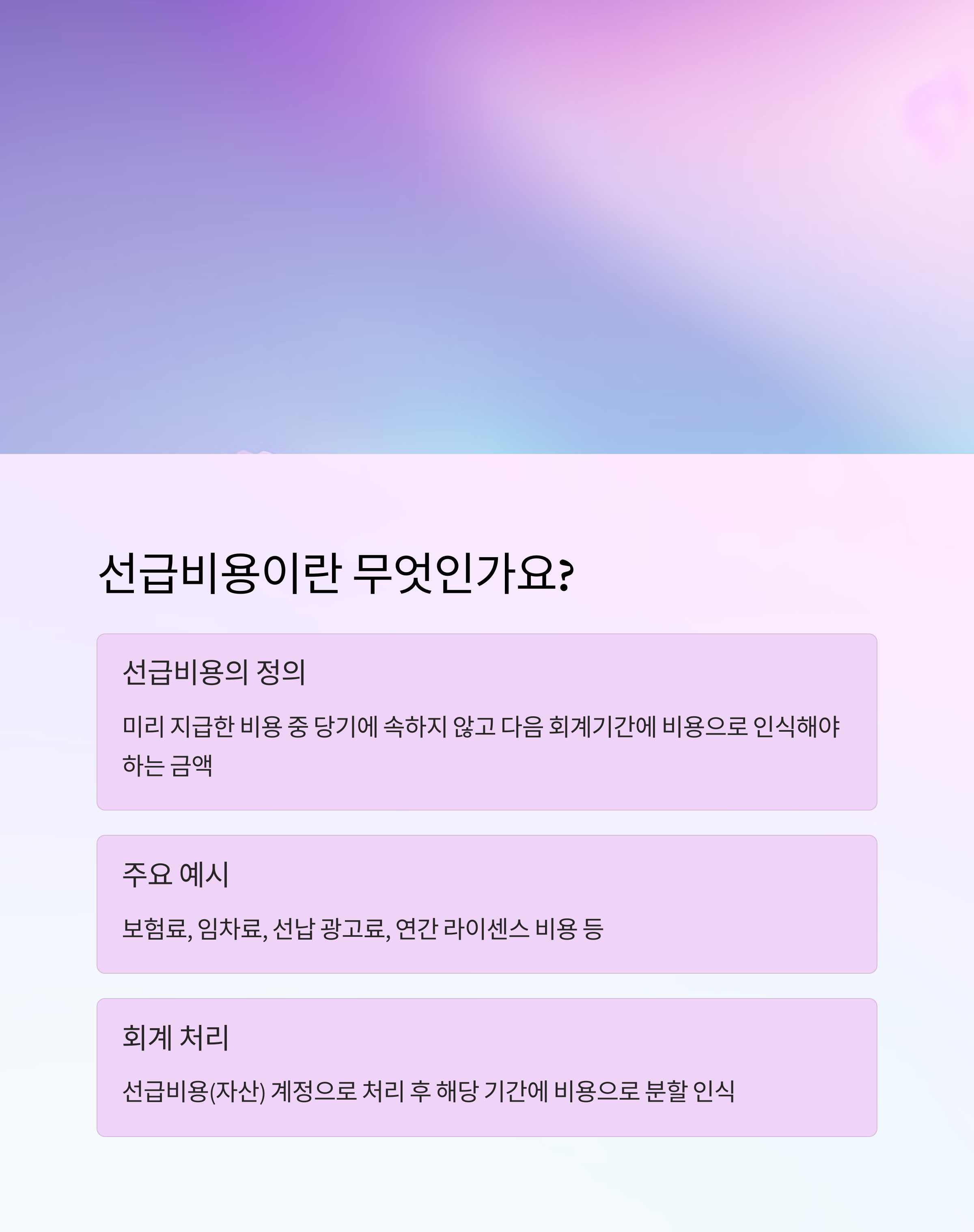 보험료나 임차료처럼 선납이 이루어지는 항목은 회계 처리에서 반드시 주의가 필요해요.