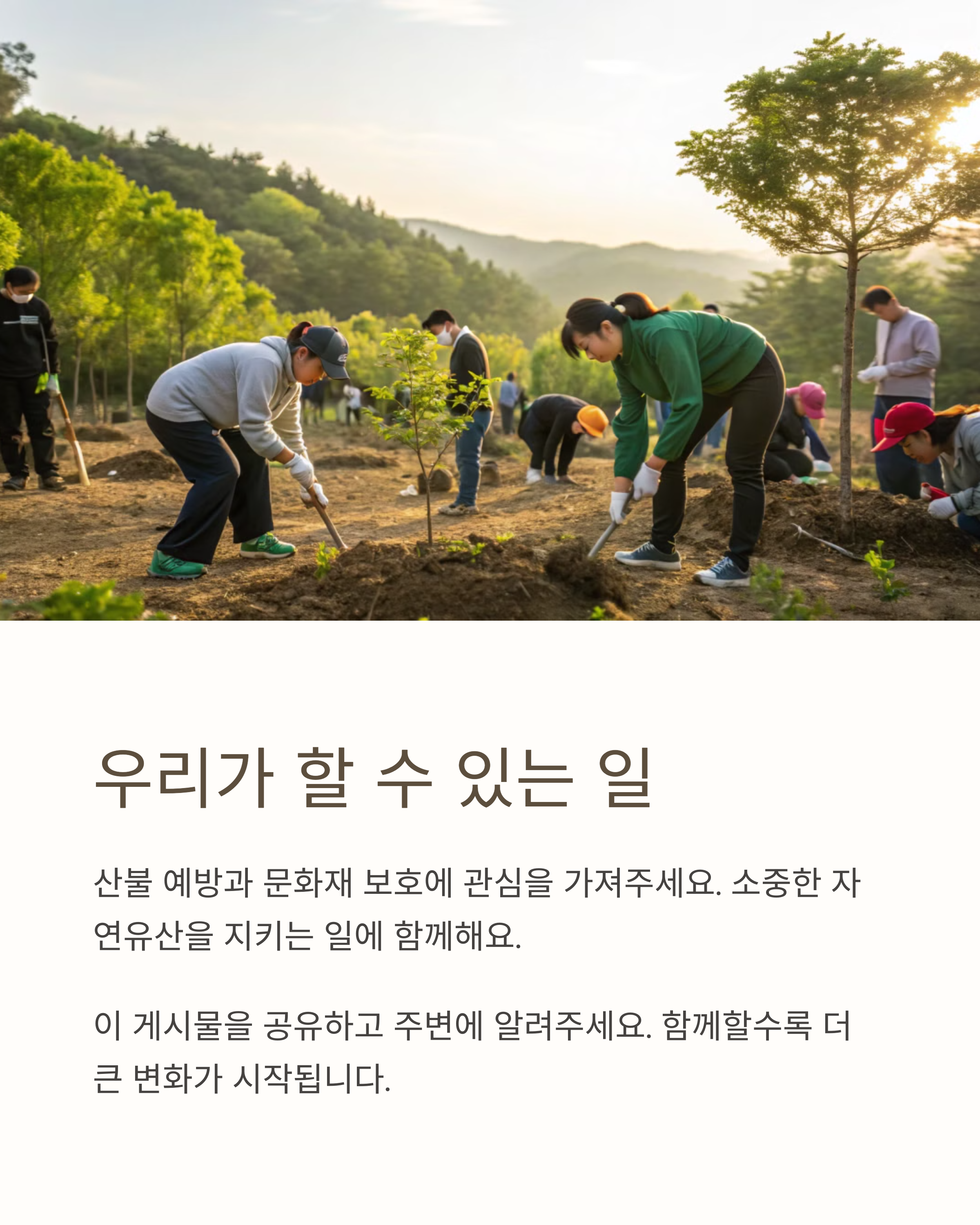 만지송의 역사를 계승하고 산불 피해 복구에 힘을 보태기 위한 작은 행동들이 필요합니다.
