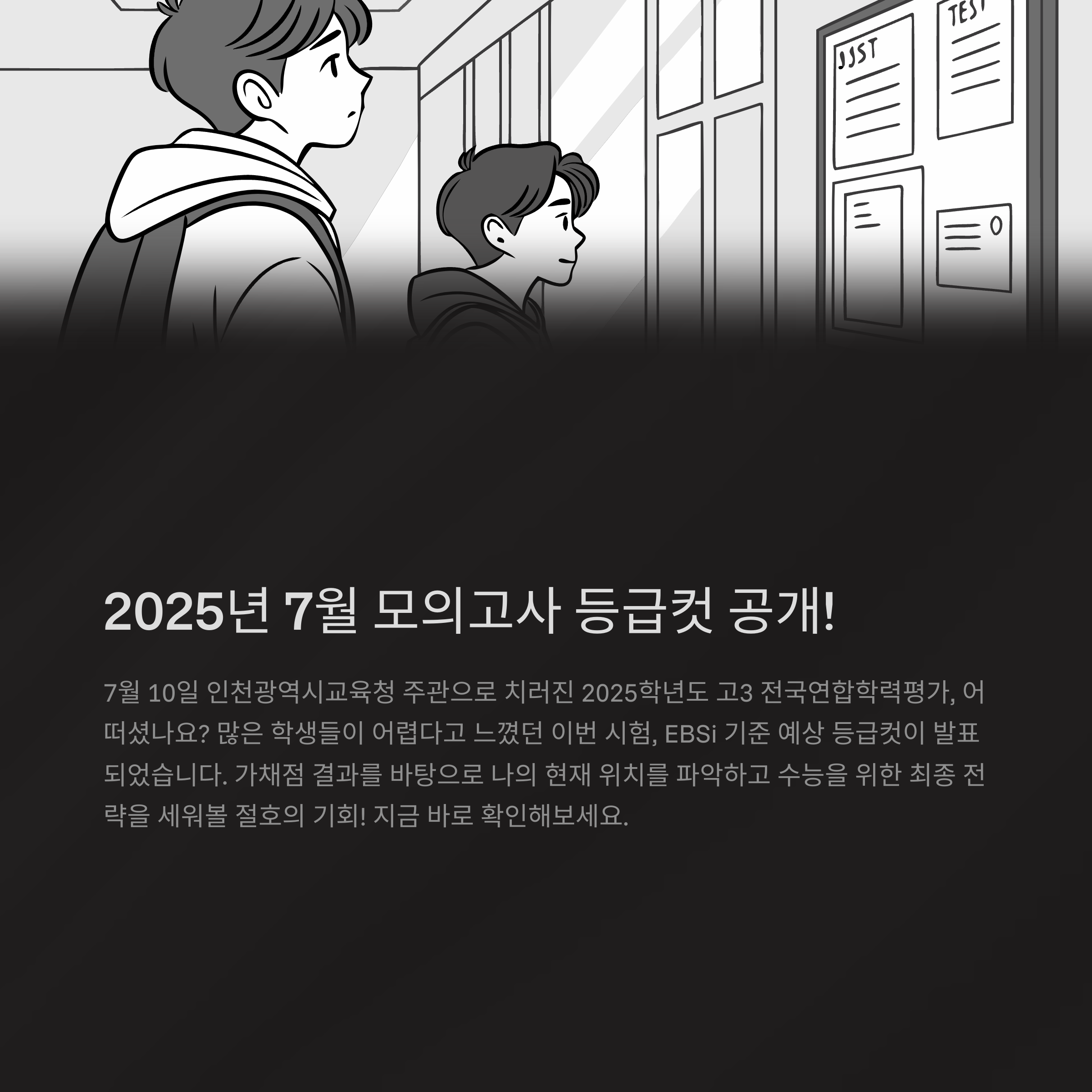 [2025년 7월 모의고사 등급컷] EBSi 기준 국어, 수학, 탐구 예상 등급컷이 공개되었습니다! 이번 7월 학력평가, 많이 어려우셨죠? 가채점 결과를 바탕으로 나의 현재 위치를 파악하고, 다가올 수능을 위한 최종 전략을 세워볼 절호의 기회입니다.