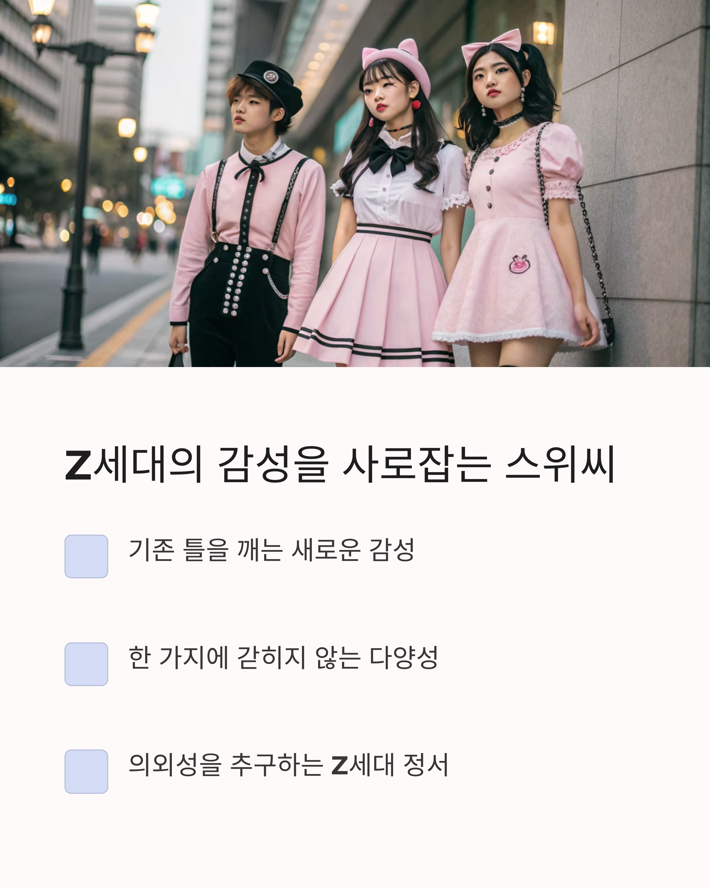 Z세대는 스위씨를 단순한 유행어가 아닌, 자신의 정체성과 취향을 표현하는 수단으로 씁니다. 아래는 실제로 자주 쓰이는 상황들!