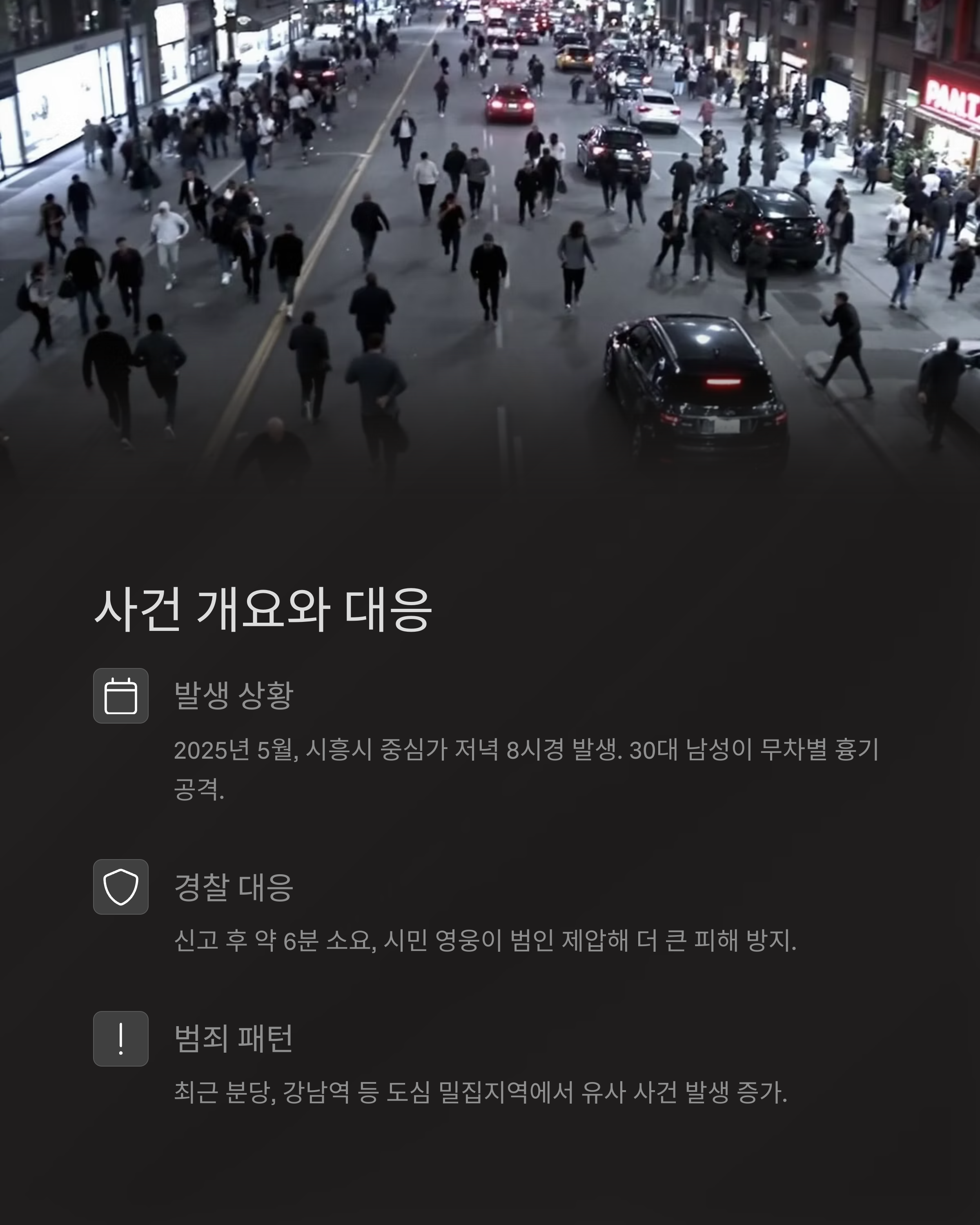 이번 시흥 흉기 난동 사건은 경찰의 현장 대응과 관련해 많은 논란을 불러일으켰습니다. 신고 접수 후 현장 도착까지 약 6분이 소요되었고, 그 사이 피해가 속출했죠. 시민들은 "더 빨리 왔어야 했다"며 분노했고, 경찰은 "최선을 다했다"고 해명했지만, 제도적 구조의 한계는 분명해 보입니다.