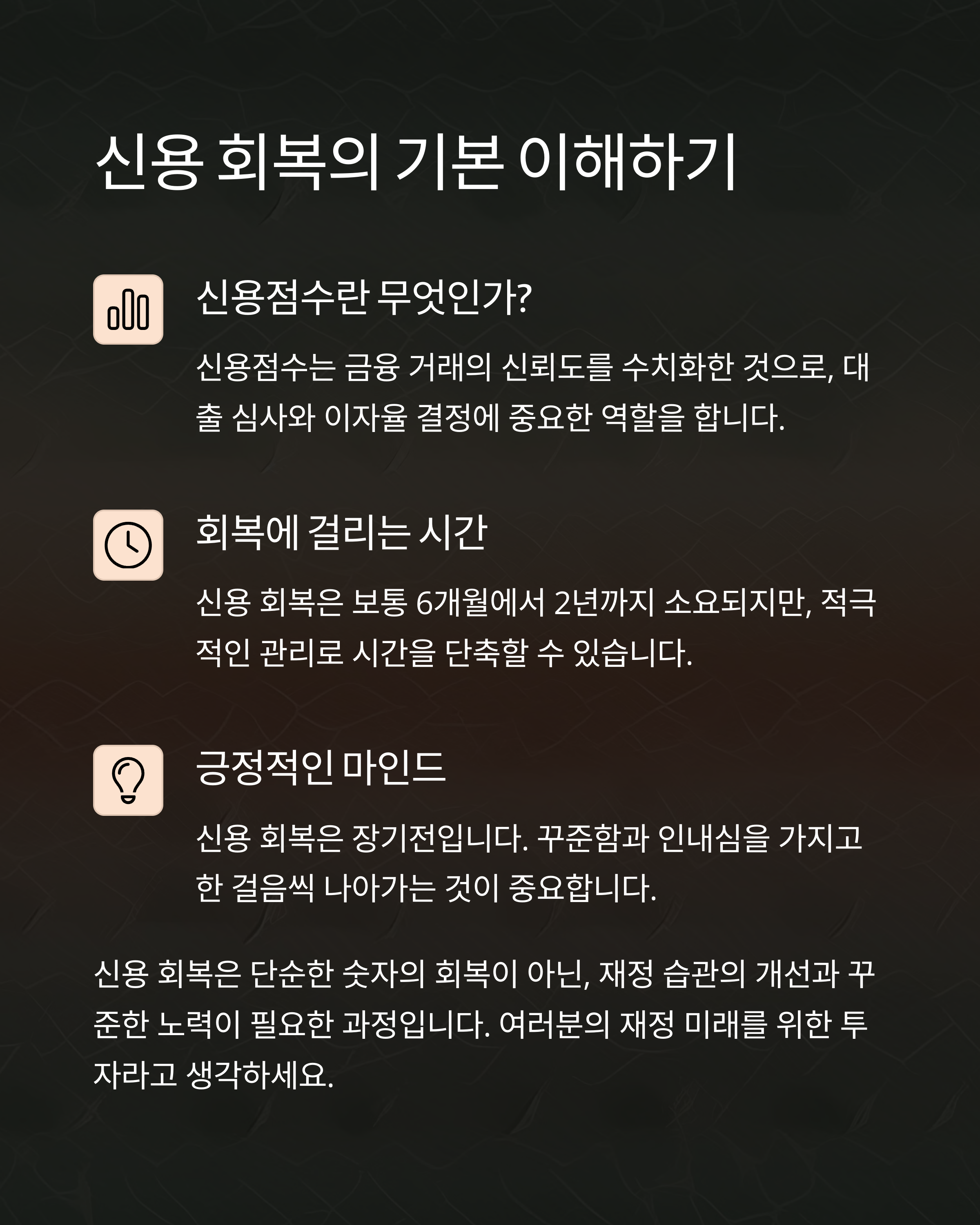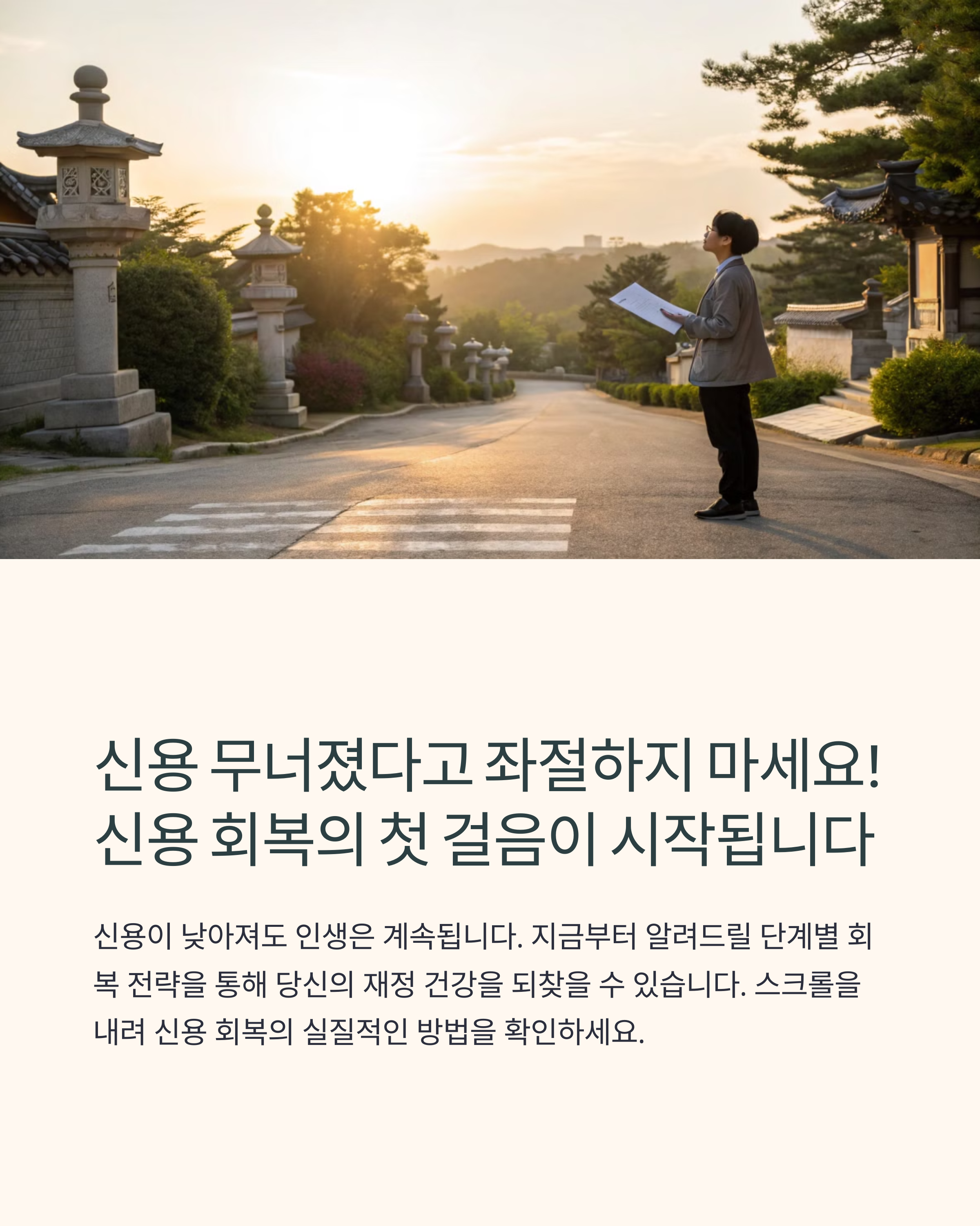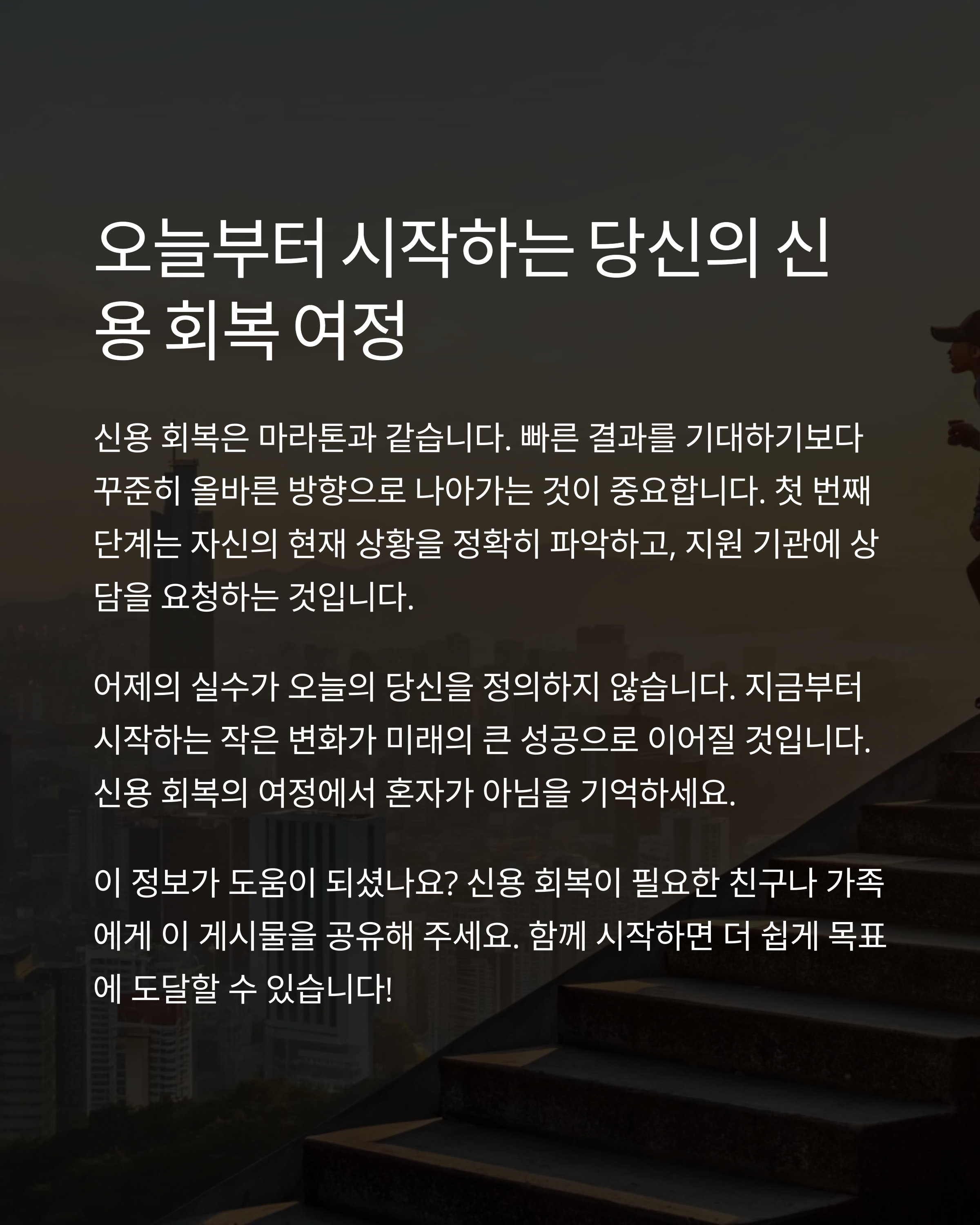 신용은 인생의 기반이자 미래를 여는 열쇠입니다. 잠시 무너졌더라도, 다시 일어설 수 있는 길은 항상 존재해요.
