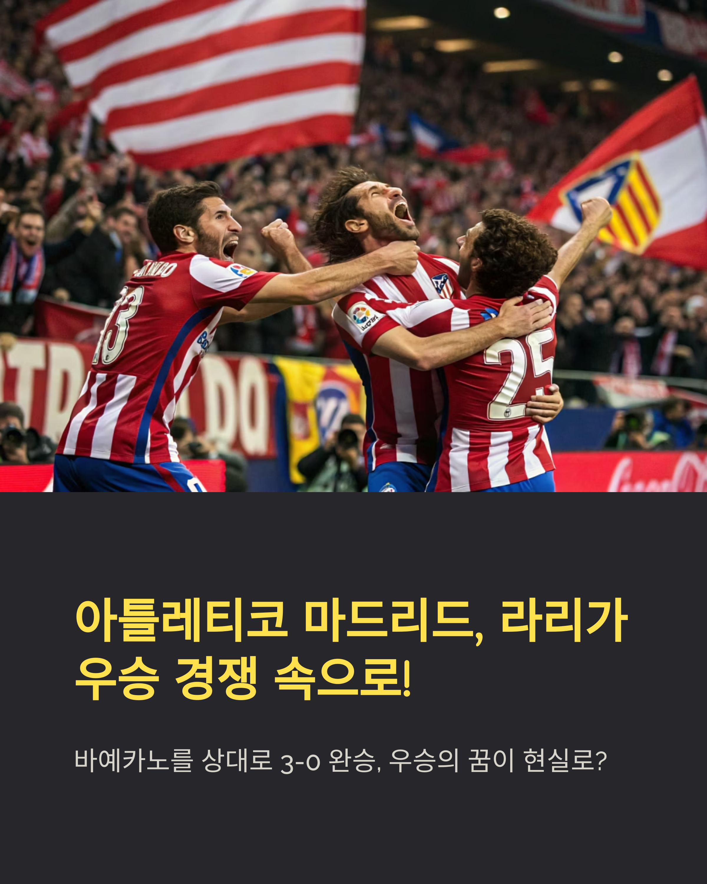 안녕하세요, 축구 팬 여러분! 요즘 유럽축구는 리그마다 흥미로운 레이스가 펼쳐지고 있는데요, 특히 라리가에서는 아틀레티코 마드리드가 절대 포기하지 않는 DNA를 보여주며 다시 한번 우승 경쟁에 불을 지피고 있습니다. 바예카노와의 경기에서 3-0 대승을 거두며 분위기 반전에 성공한 ATM의 행보, 과연 어디까지 이어질 수 있을까요? 오늘은 그 경기의 포인트와 향후 전망을 집중 분석해볼게요!