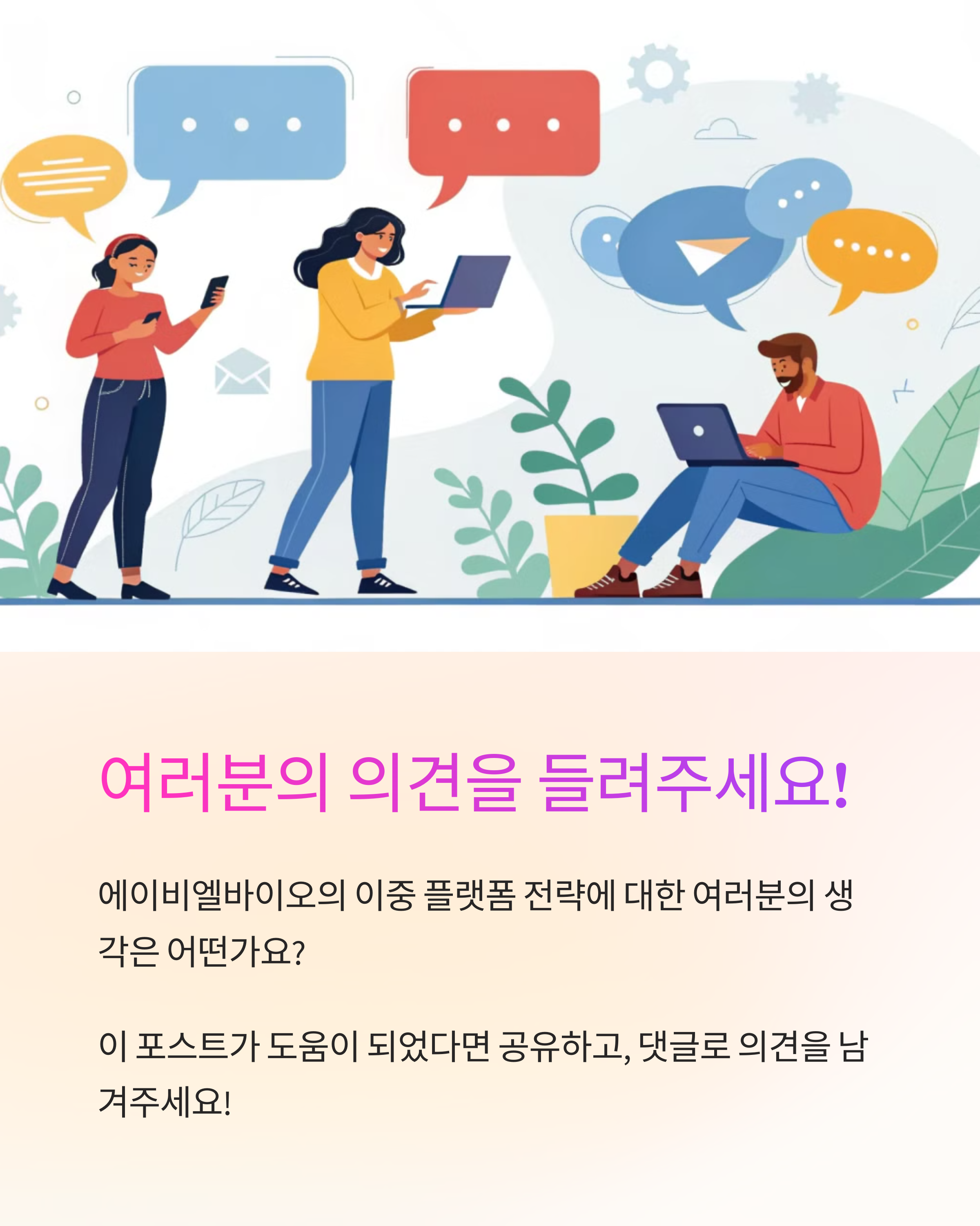에이비엘바이오는 바이오 업계에서 흔치 않은 이중 플랫폼 전략을 구사하는 기업입니다. 이중항체에 이어 ADC까지 확장하며 또 한 번의 도약을 준비하고 있죠. 물론 리스크도 존재하지만, 시장이 주목하는 기술 분야에서 차별화된 입지를 다져가고 있다는 점은 분명 긍정적입니다. 이 글이 여러분의 투자 판단에 도움이 되길 바랍니다. 여러분의 생각은 어떤가요? 댓글로 함께 이야기 나눠요!