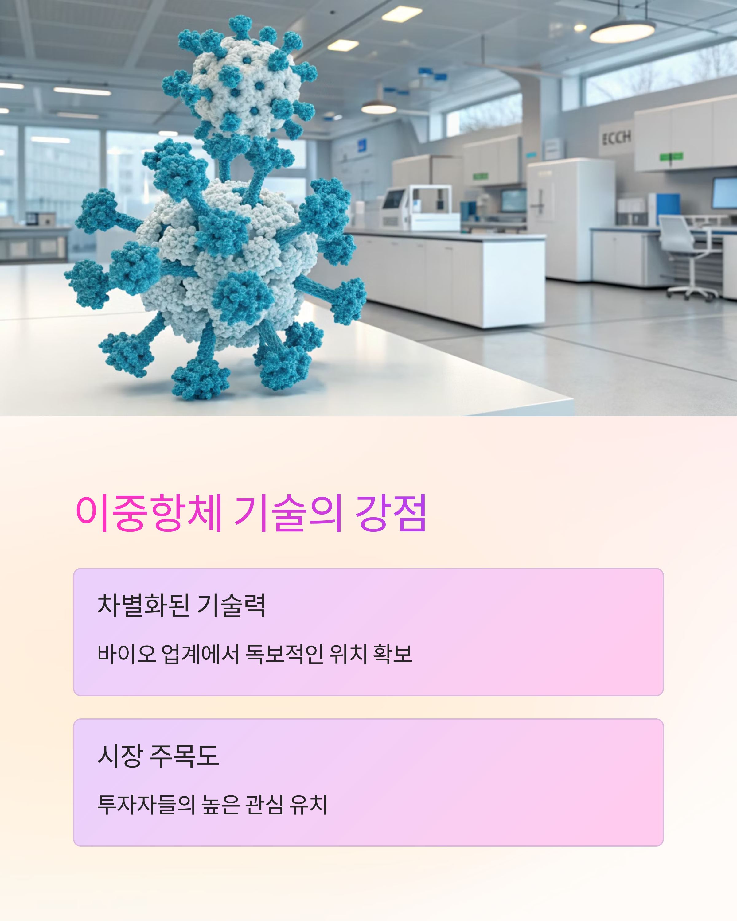 에이비엘바이오의 이중항체 기술은 면역세포와 암세포를 동시에 타겟하는 방식으로, 기존 단일항체 대비 더 강력한 항암 효과를 유도합니다. 특히 다국적 제약사들과의 기술이전 계약을 통해 그 기술력을 입증받아왔죠.