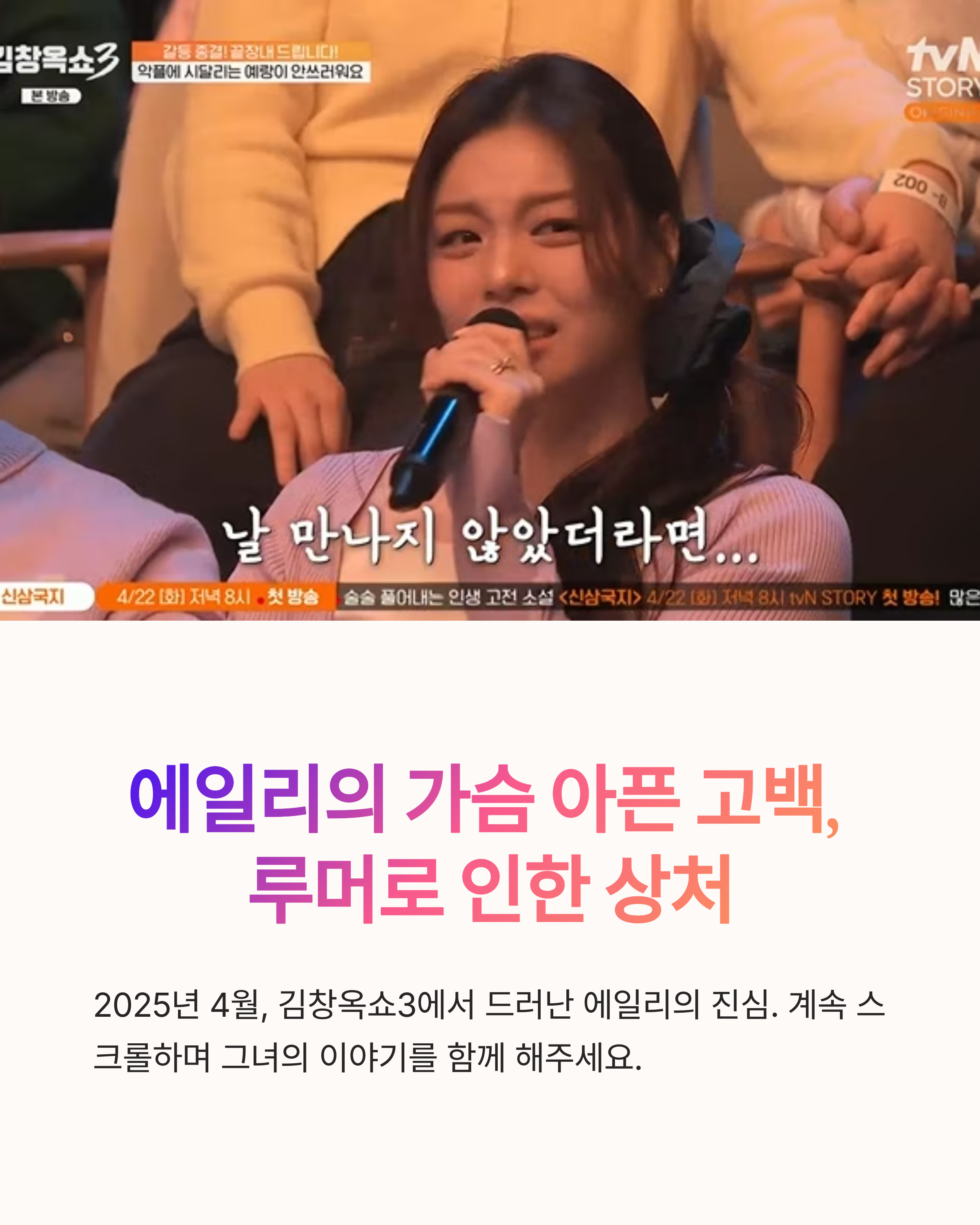 에일리, 최시훈 예비신랑 루머에 눈물… 김창옥쇼3에서 직접 밝힌 진심