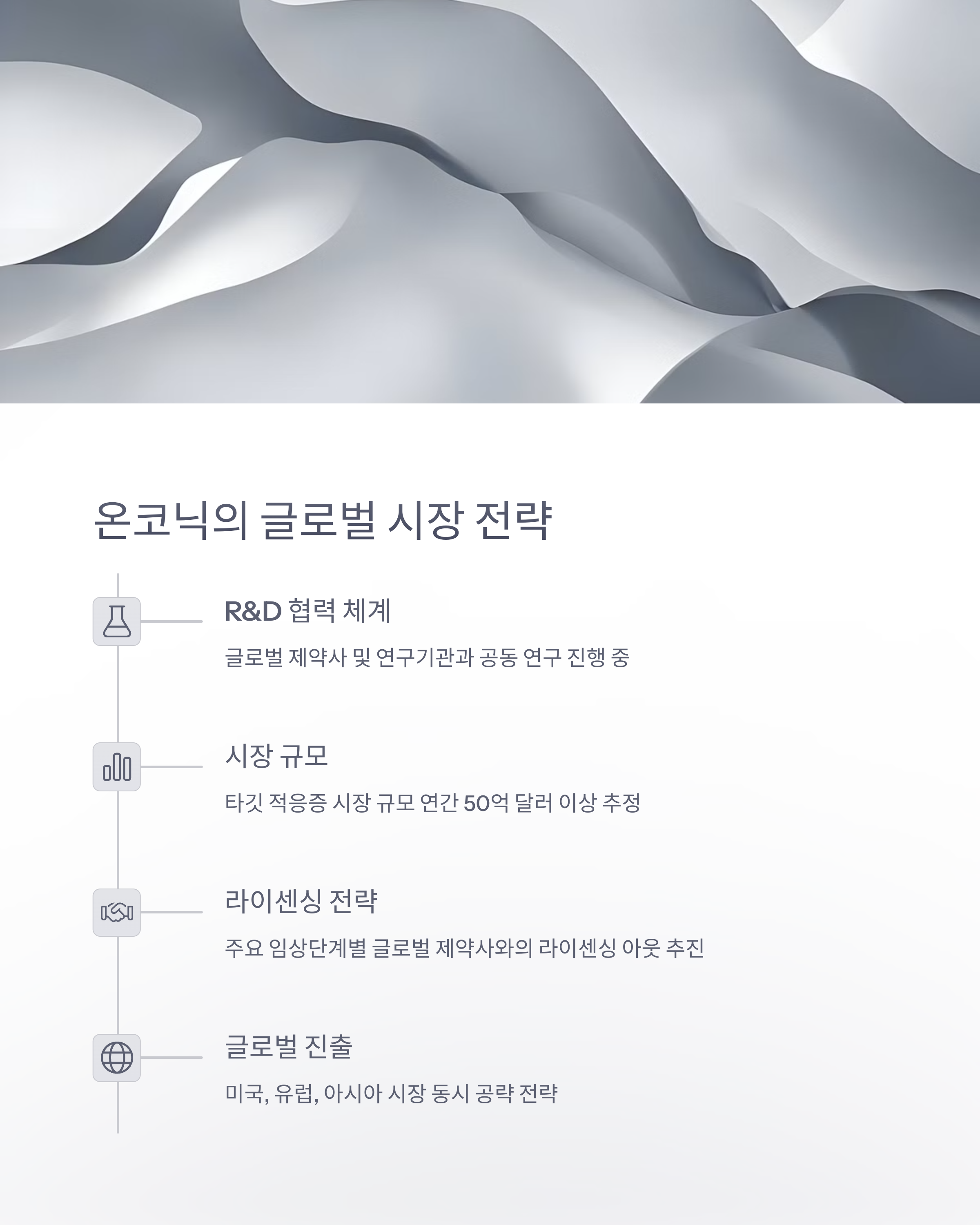 온코닉테라퓨틱스는 단순히 신약 하나에 기대는 벤처가 아닙니다. 다각적인 파이프라인 전략과 공격적인 글로벌 임상 전략으로 ‘글로벌 항암제 전문 기업’을 꿈꾸고 있어요. 실제로 네수파립 외에도 다양한 암종을 타깃으로 한 후보물질들을 개발 중이며, 글로벌 제약사와의 협력도 적극적으로 추진하고 있답니다.