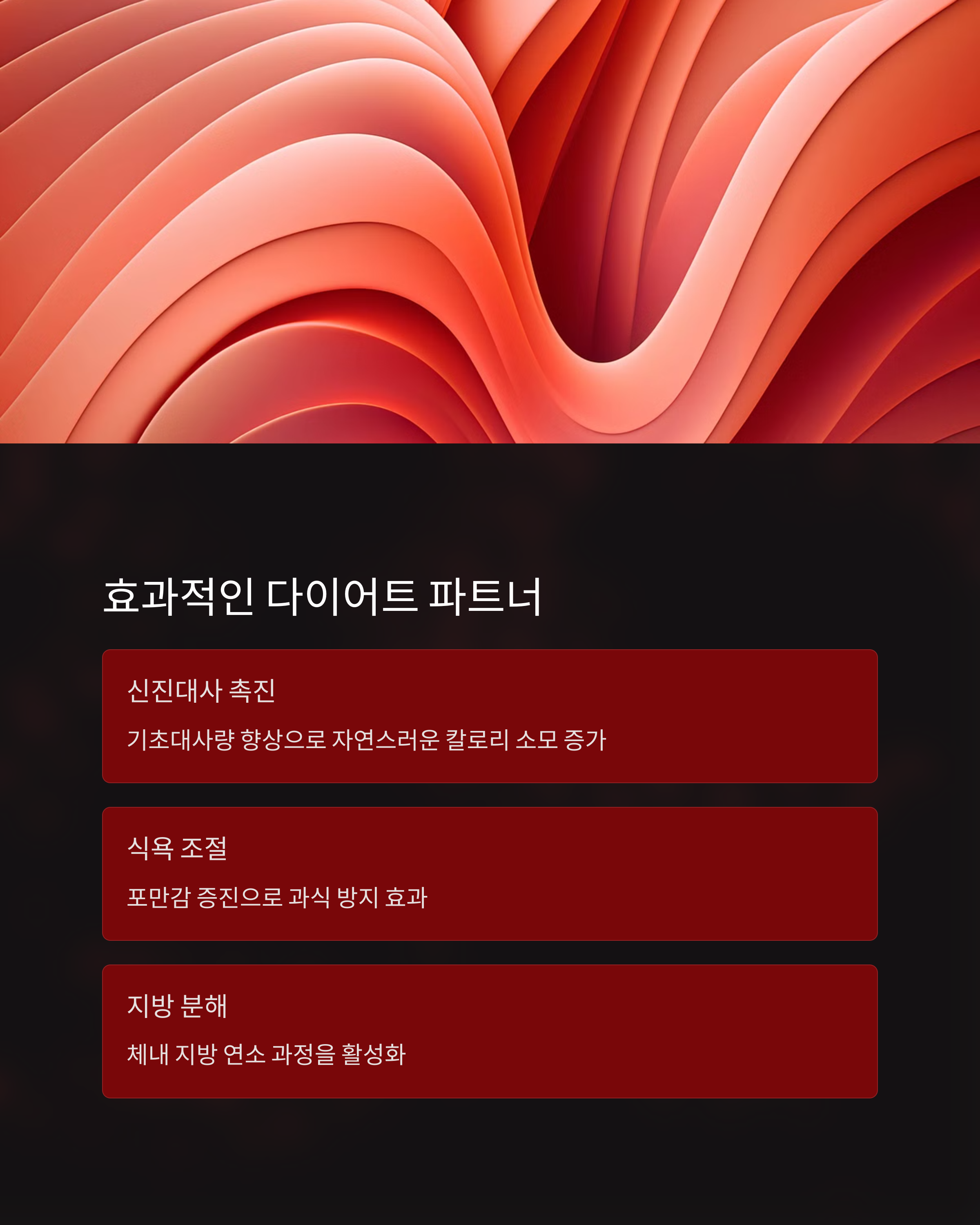 | 효과 | 체지방 분해를 촉진하고, 내장지방 감소에 기여 |