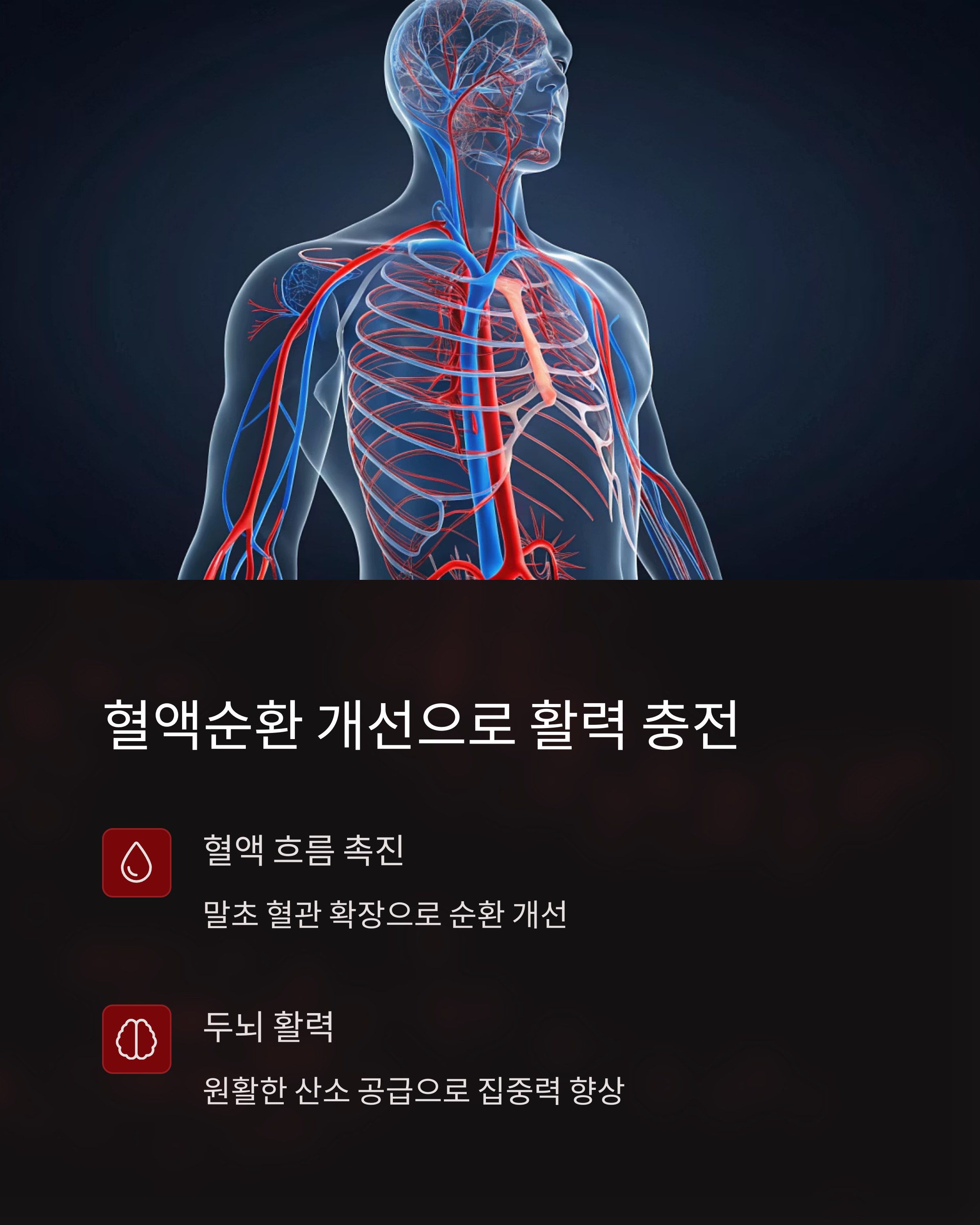 • 모세혈관 순환 개선: 손발 저림, 냉증 완화에 도움