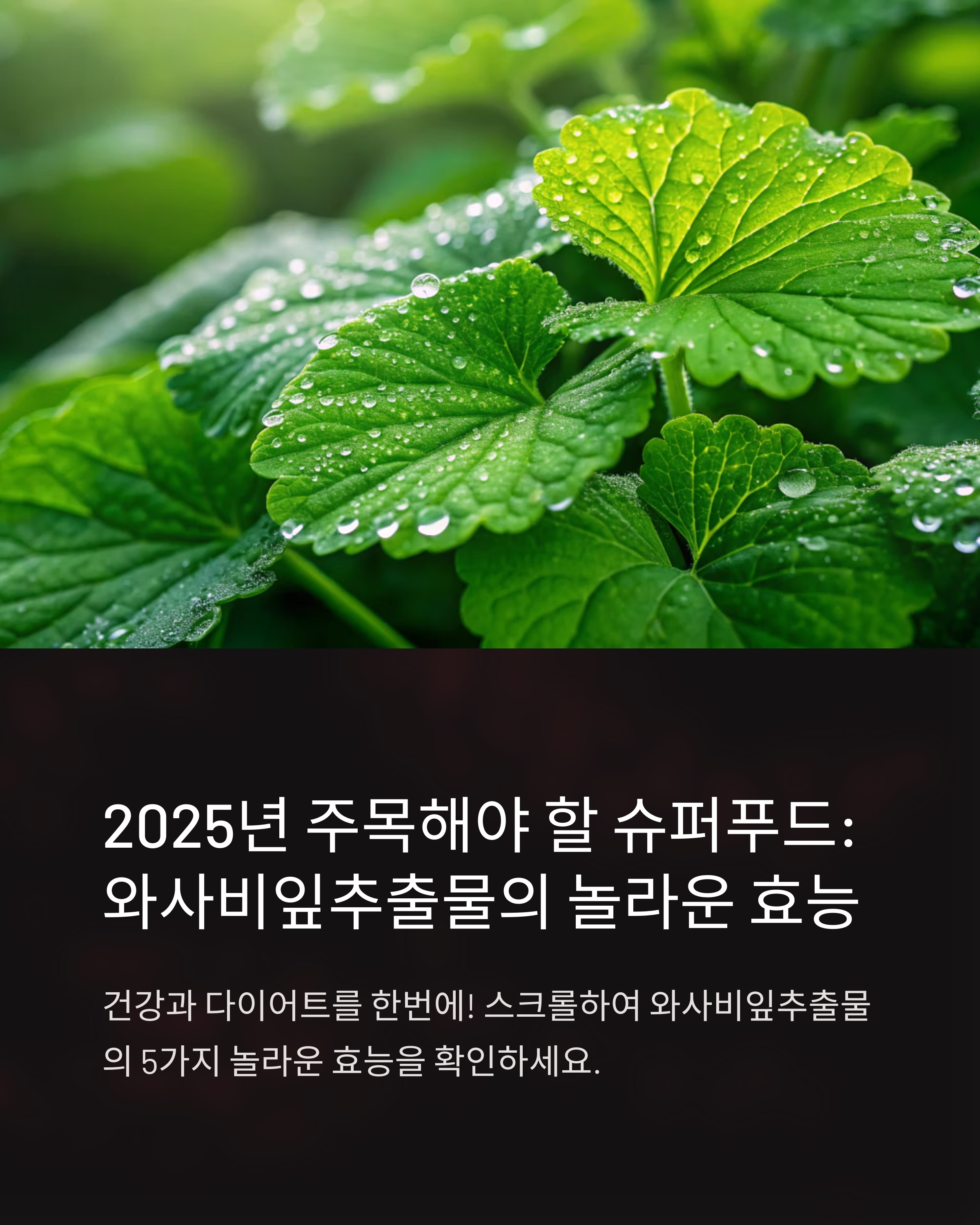 2025년 들어 국내외 건강기능식품 업계에서 ‘와사비잎추출물’이 뜨거운 관심을 받고 있습니다. 특히 다이어트, 항염 효과, 혈액순환 등에 긍정적 영향을 미친다는 연구 결과가 이어지며, 유튜브와 블로그를 통해 입소문이 번지고 있죠.