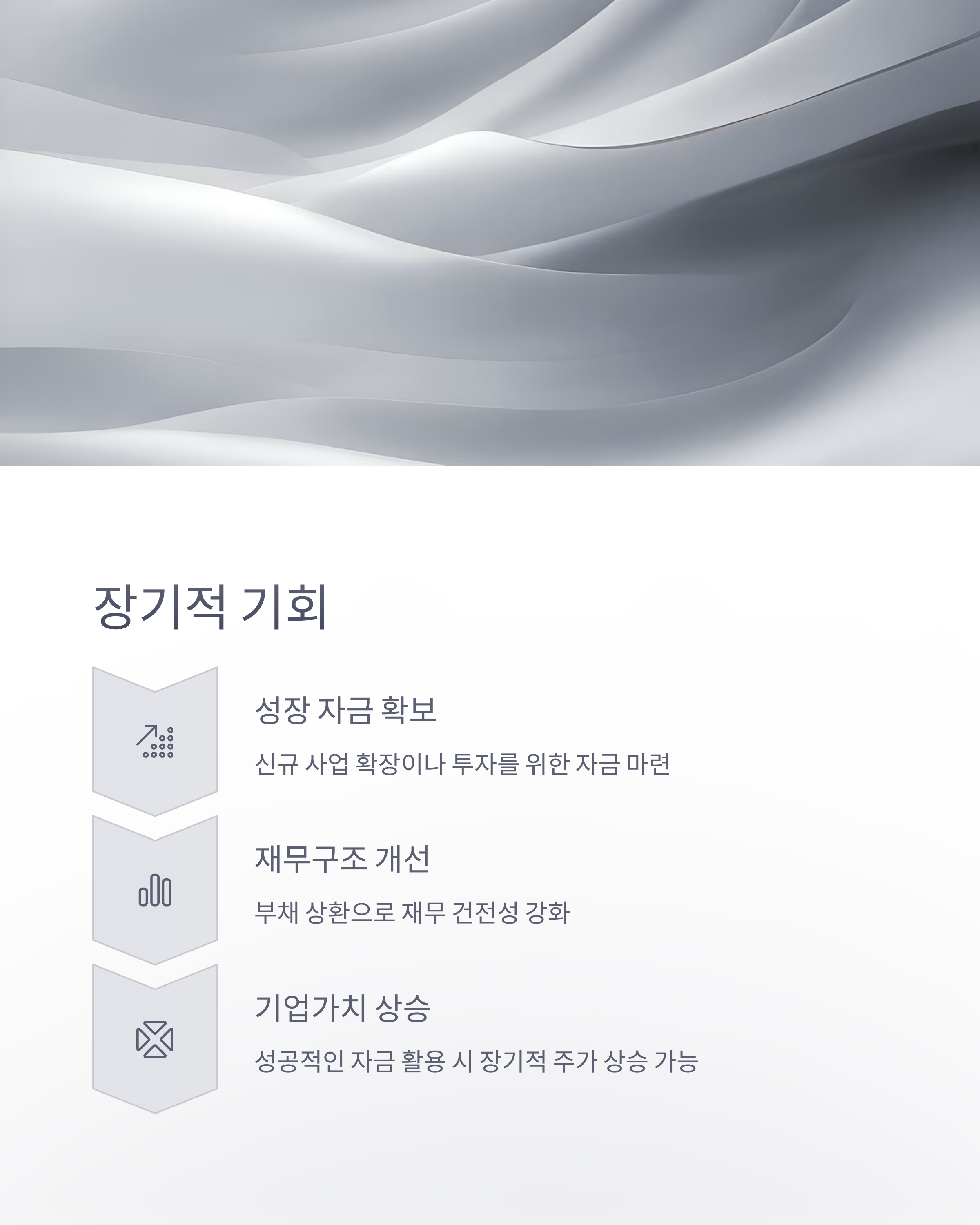 단기적으로는 하락하는 경우가 많지만, 자금 활용이 잘 되면 오히려 장기 상승 계기가 될 수도 있습니다.