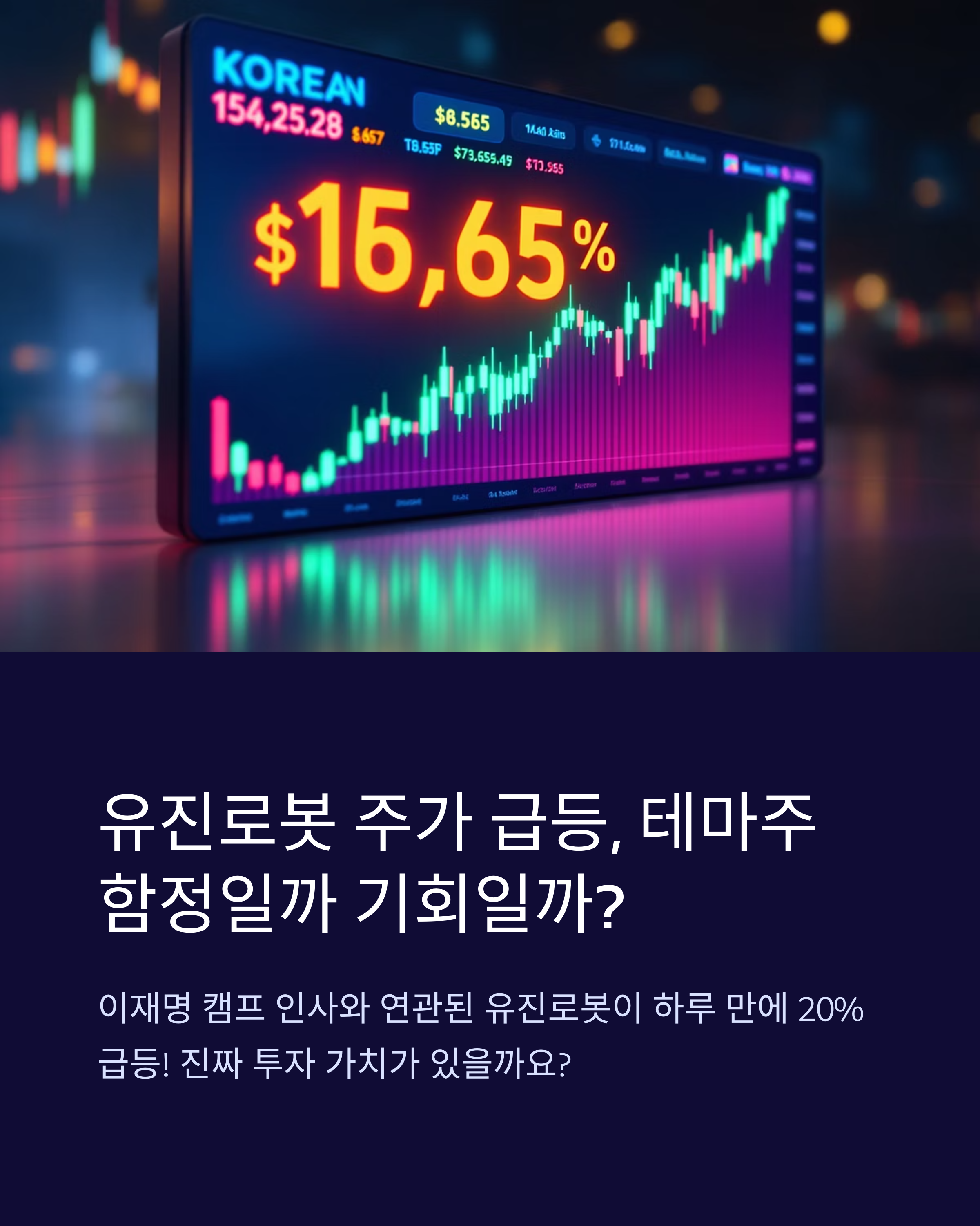 안녕하세요, 요즘 주식 시장 정말 정신없죠? 특히 정치 테마주가 들썩이면서 하루에도 몇 번씩 급등락이 반복되는 걸 보면 솔직히 무섭기도 해요. 그런데 얼마 전 유진로봇이 하루 만에 20% 넘게 급등했다는 소식을 듣고, 저도 깜짝 놀랐답니다. 알고 보니 이재명 캠프의 미래기술 특보로 사외이사가 참여한 게 알려지면서 테마주로 급부상한 거였더라고요. 근데 그게 다일까요? 그냥 이름 하나 올랐다고 이렇게 급등해도 되는 걸까요? 그래서 오늘은 유진로봇의 진짜 가치와 투자자들이 꼭 알아야 할 포인트를 정리해드리려고 해요. 지금 시작해볼게요!