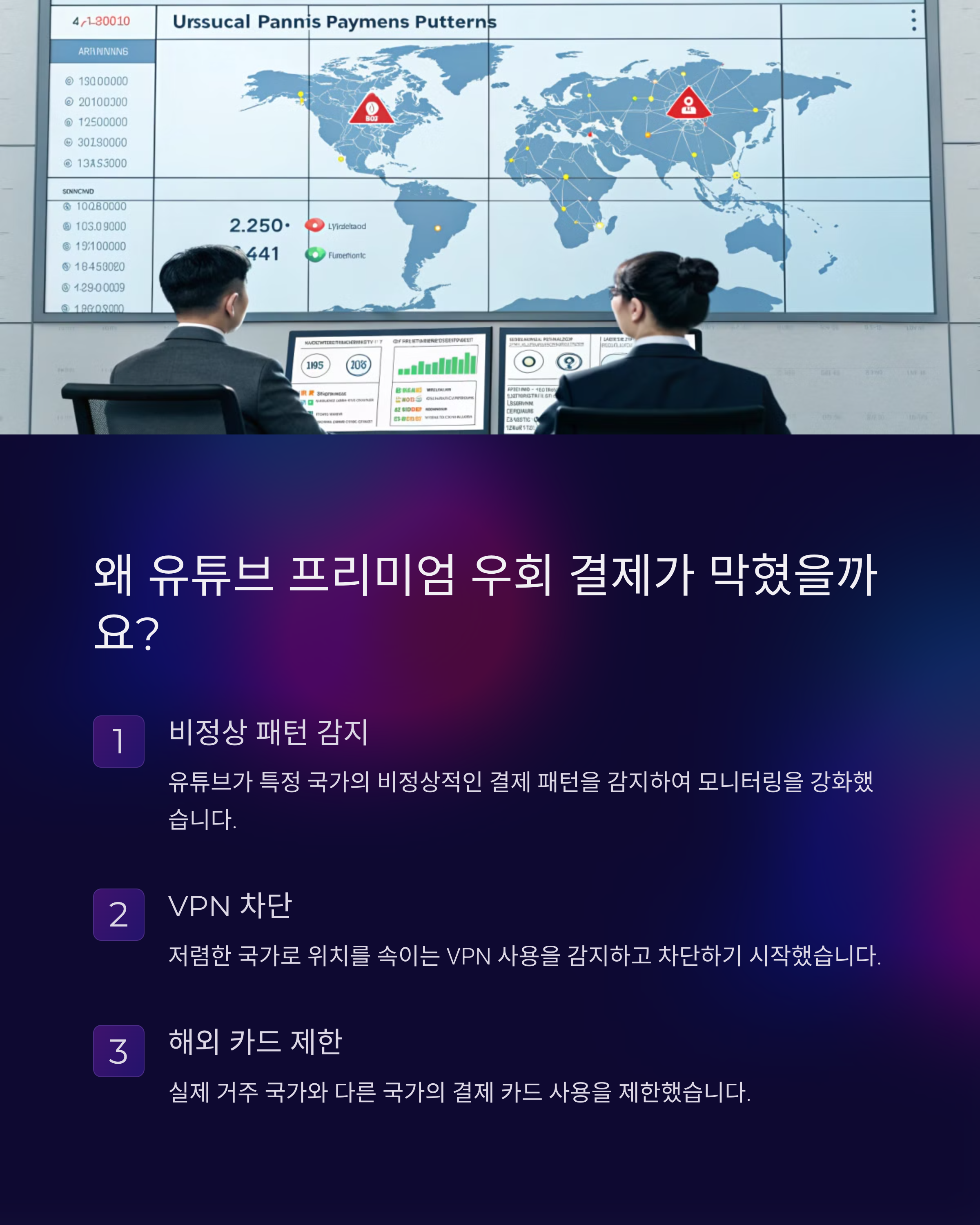 이러한 조치는 유튜브가 국가별 가격 차이를 악용하는 사용자를 막기 위한 것입니다. 특히 VPN을 이용해 IP를 변경한 후 결제하는 방식이 광범위하게 사용되었고, 유튜브는 이에 대응하여 IP 기반 차단을 강화하고 결제 수단까지 확인하는 방식으로 보안을 강화했습니다.