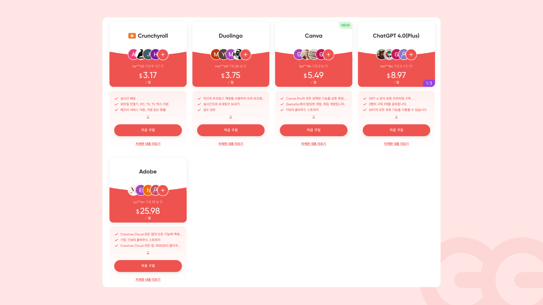 이제 유튜브 프리미엄, 넷플릭스, ChatGPT까지! 더 이상 비싸게 구독할 필요가 없습니다. 겜스고 프로모션을 활용하면 더 저렴한 가격으로 구독 서비스를 이용할 수 있어요. 최신 할인 코드와 꿀팁을 놓치지 말고, 합리적인 가격으로 최고의 서비스를 즐겨보세요!
