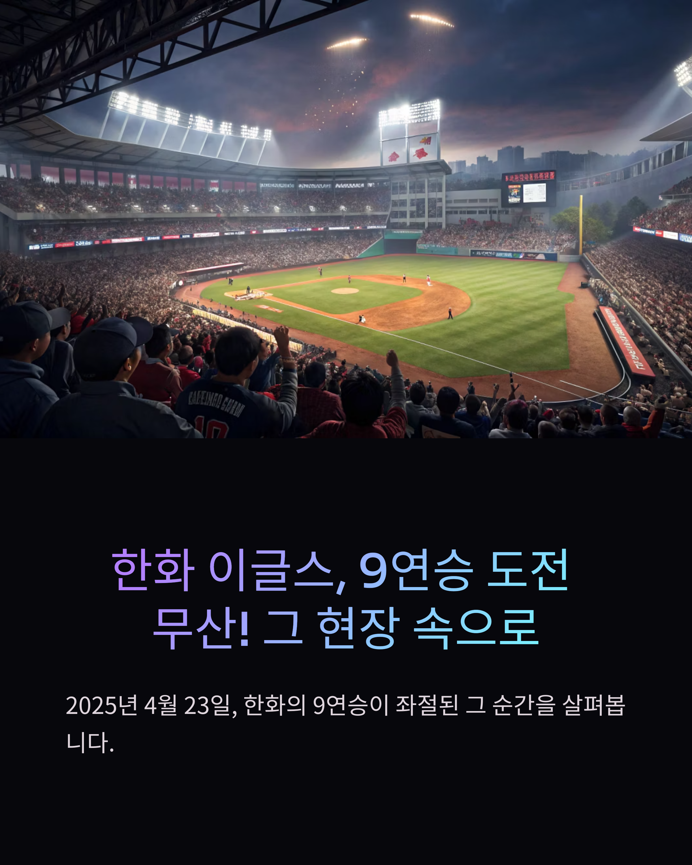 2025년 4월 23일 대전 한화생명이글스파크. 한화는 롯데를 상대로 9연승에 도전했지만 3-5 패배를 기록하며 연승 행진이 멈췄습니다. 류현진은 6이닝 4실점(3자책)을 기록하며 제 역할을 다하지 못했고, 롯데 타선은 중후반 결정적 한 방으로 승부를 갈랐습니다.