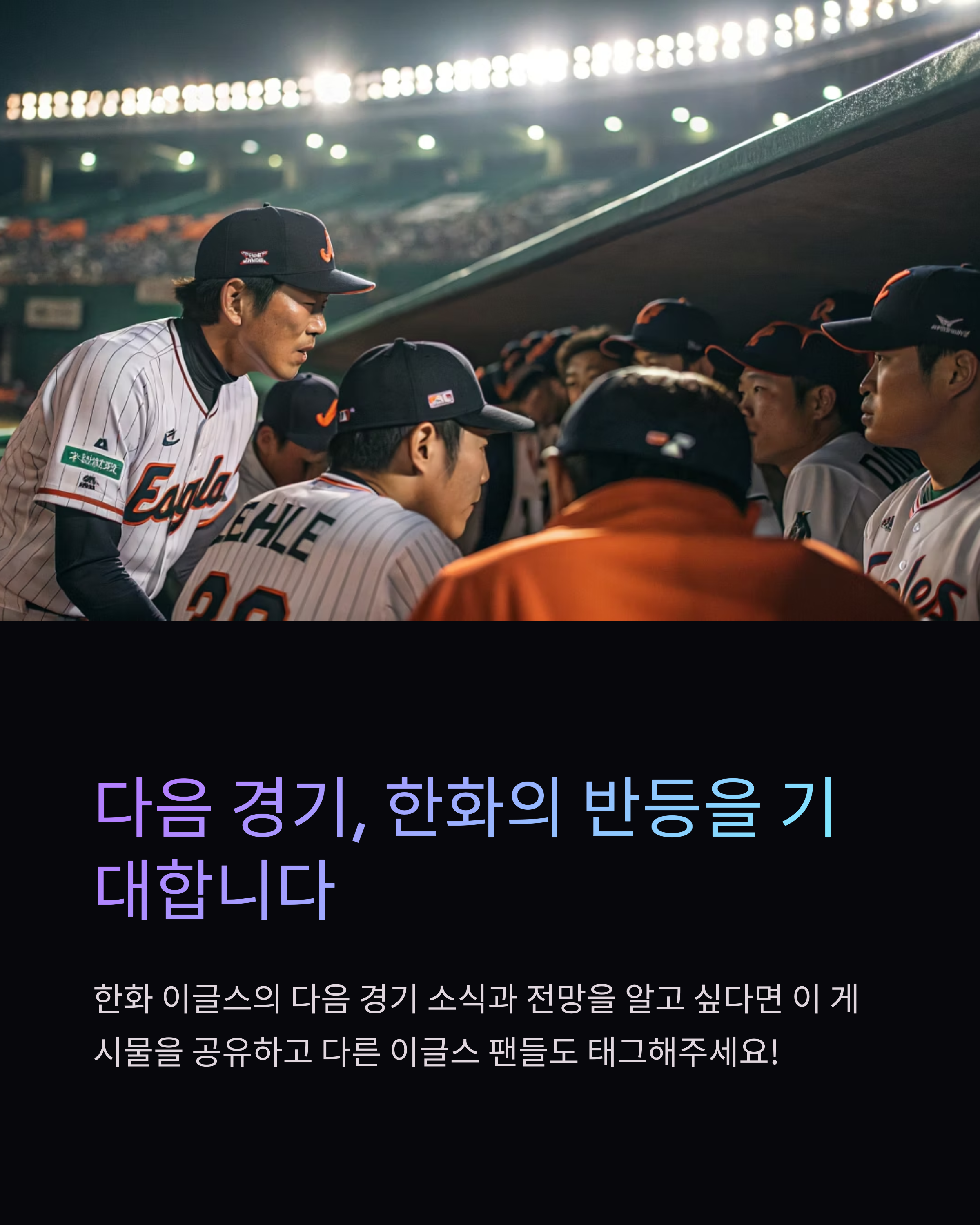 한화는 다음 경기에서 반등을 노립니다. 선발 로테이션 상 펠릭스 페냐가 출전할 가능성이 높으며, 불펜 운영 전략에도 변화가 예상됩니다. 타선은 여전히 좋은 흐름을 유지하고 있어, 빠른 분위기 전환이 핵심이 될 것입니다.