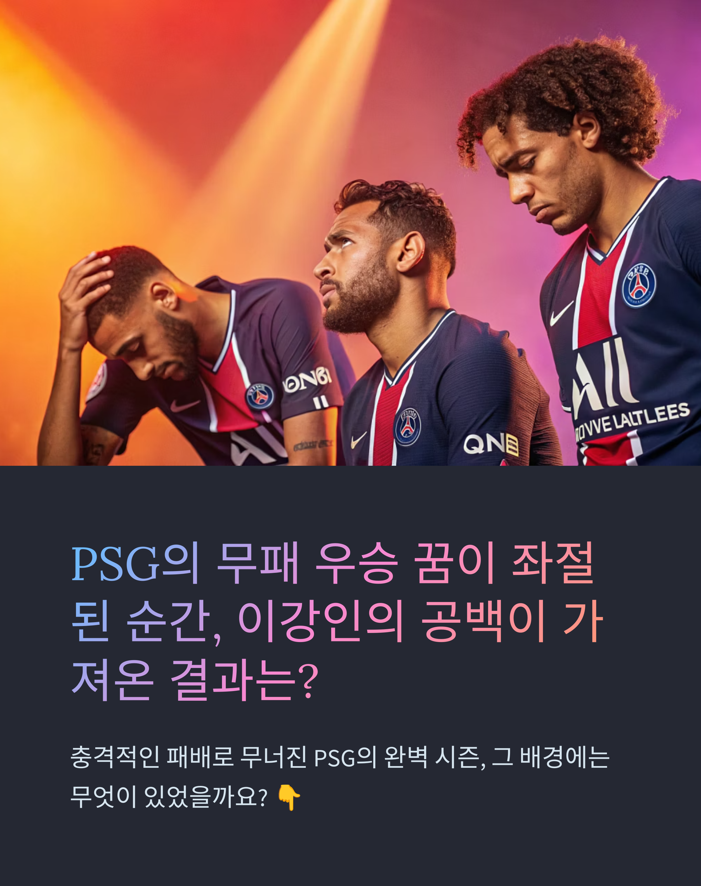 안녕하세요, 축구팬 여러분! 요즘 날씨도 제법 따뜻해지고 있는데, 축구 소식은 더욱 뜨겁네요. 특히 이번 주, 프랑스 리그1에서 터진 'PSG 무패 우승 좌절' 소식은 정말 충격이었죠. 게다가 우리의 이강인 선수까지 결장하면서 아쉬움이 더 컸는데요. 2025년 4월 현재, 유럽 축구계는 다시 한 번 격변기를 맞이하고 있습니다. 오늘은 이 소식에 대해 깊이 있게 파헤쳐 볼게요!