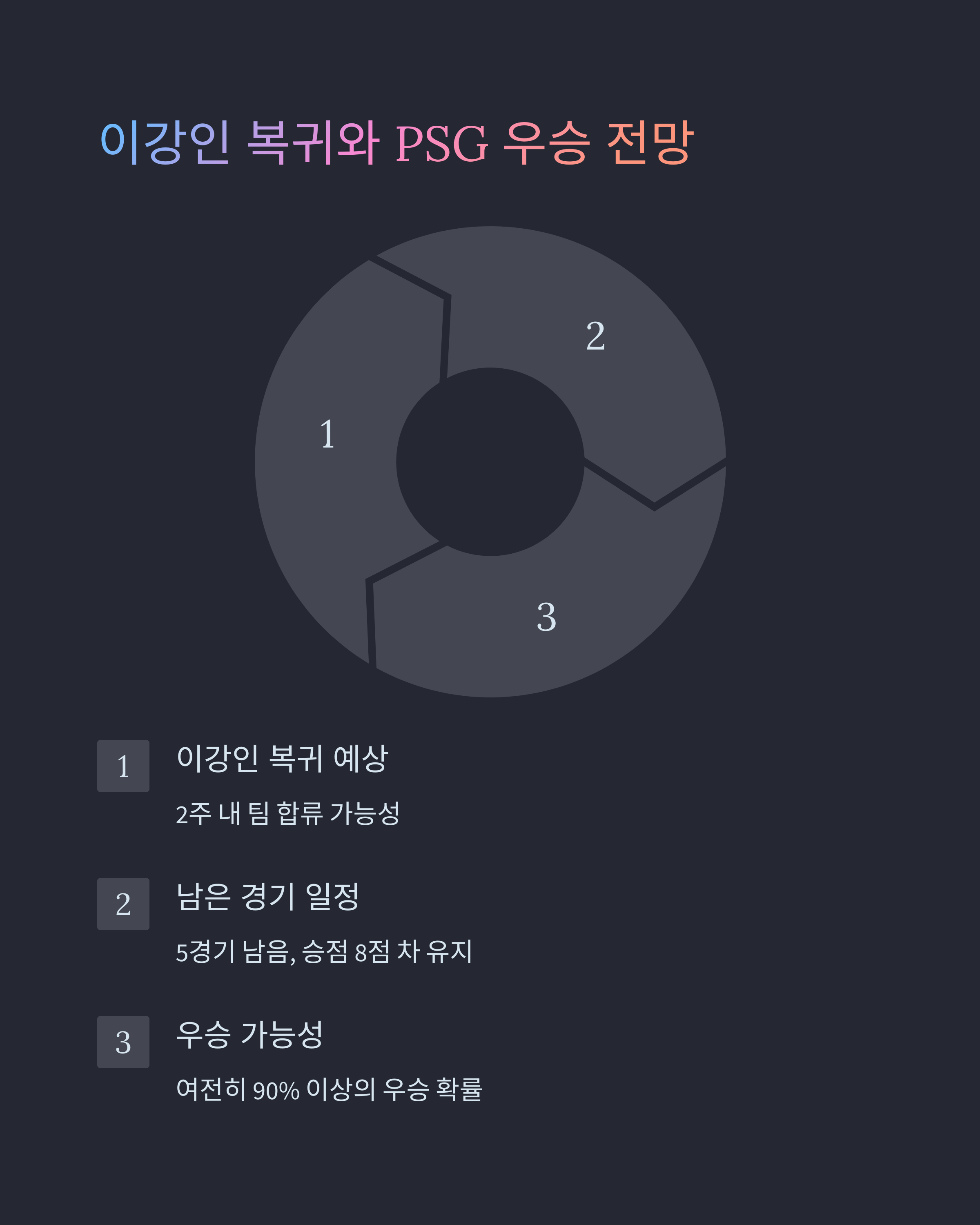 - 이강인 1~2주 내 복귀 예상 (2025년 5월 초 복귀 유력)