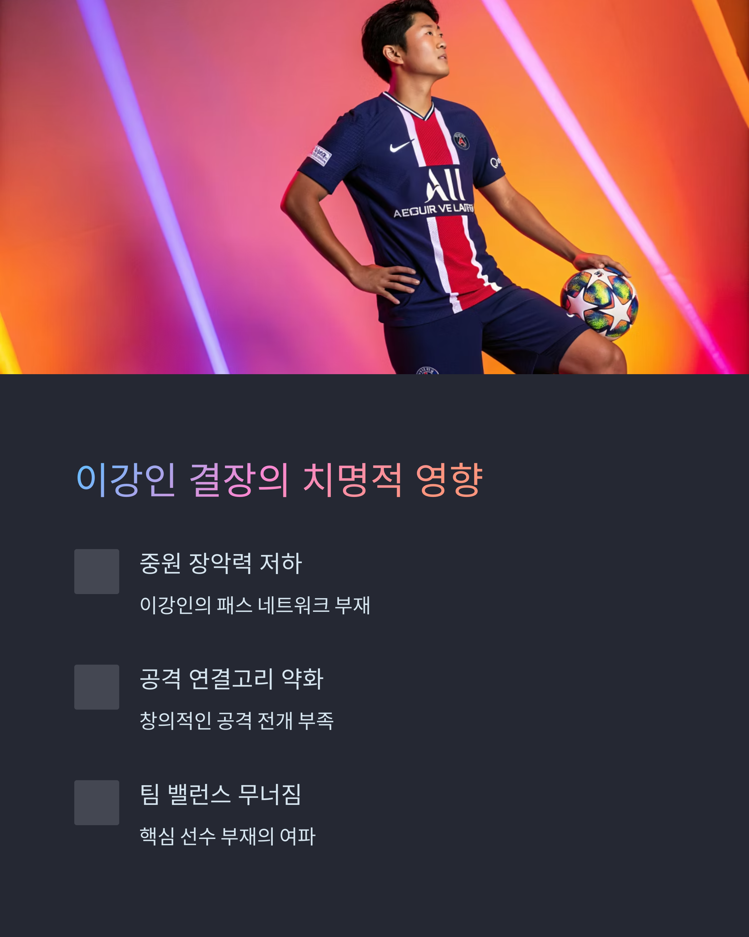 경기 후 전문가들은 입을 모아 PSG의 문제를 지적했어요. 요약하자면: