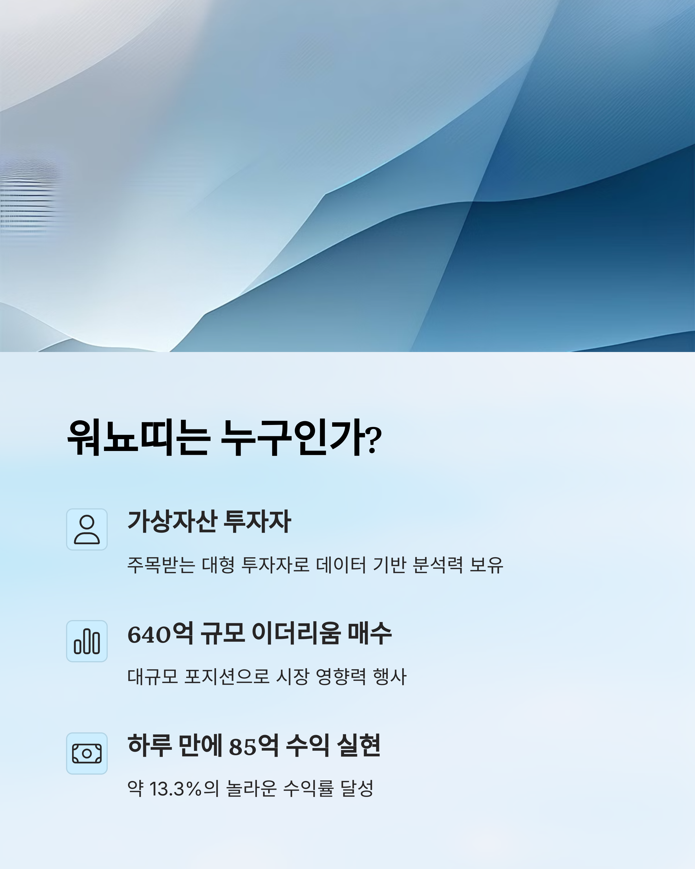 이더리움 640억 매수 후 하루 만에 85억 수익! 워뇨띠의 대담한 투자 전략 분석