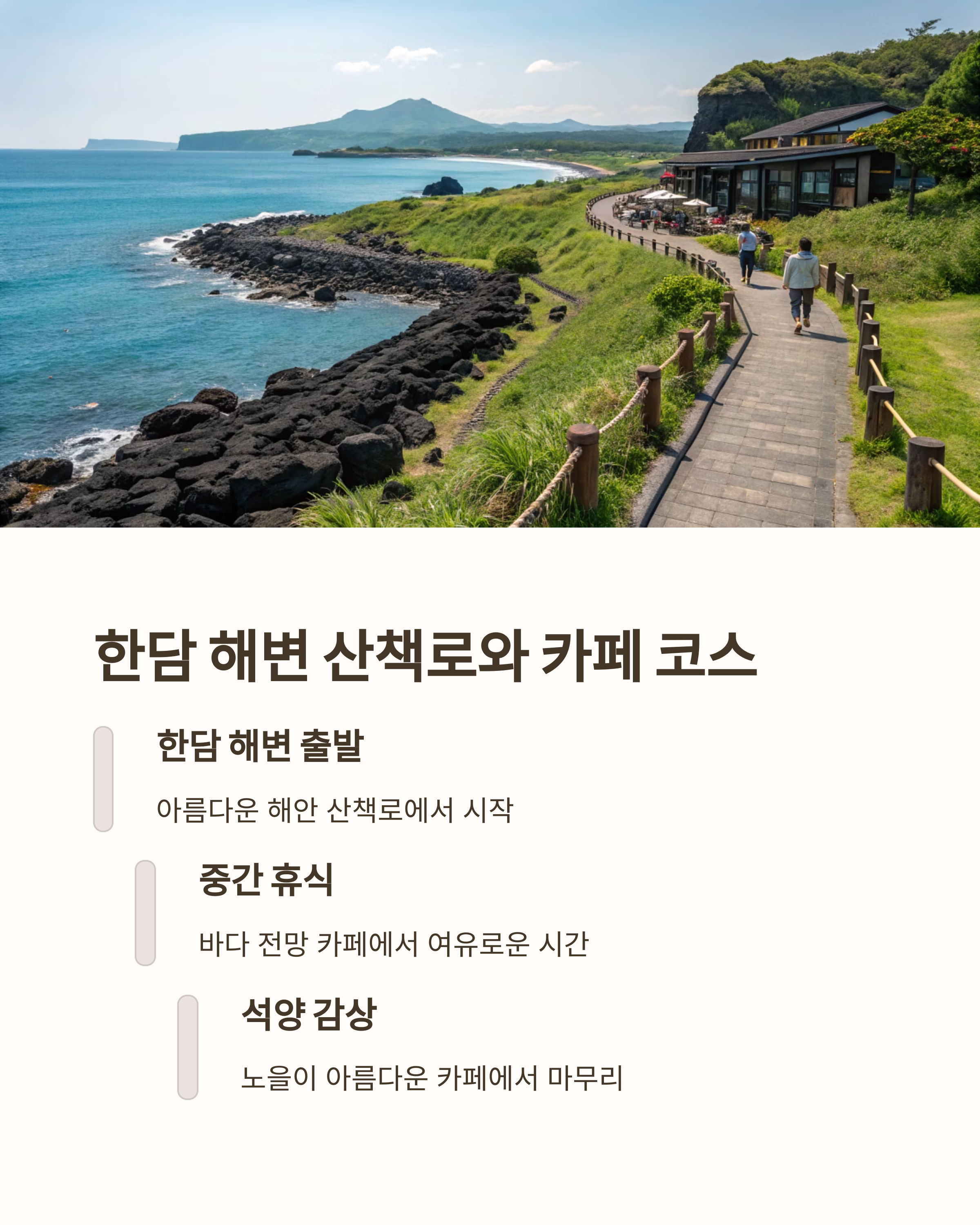 | 한담해변 주변 | △ (주말 혼잡) | 도보 이동 or 오토바이 |