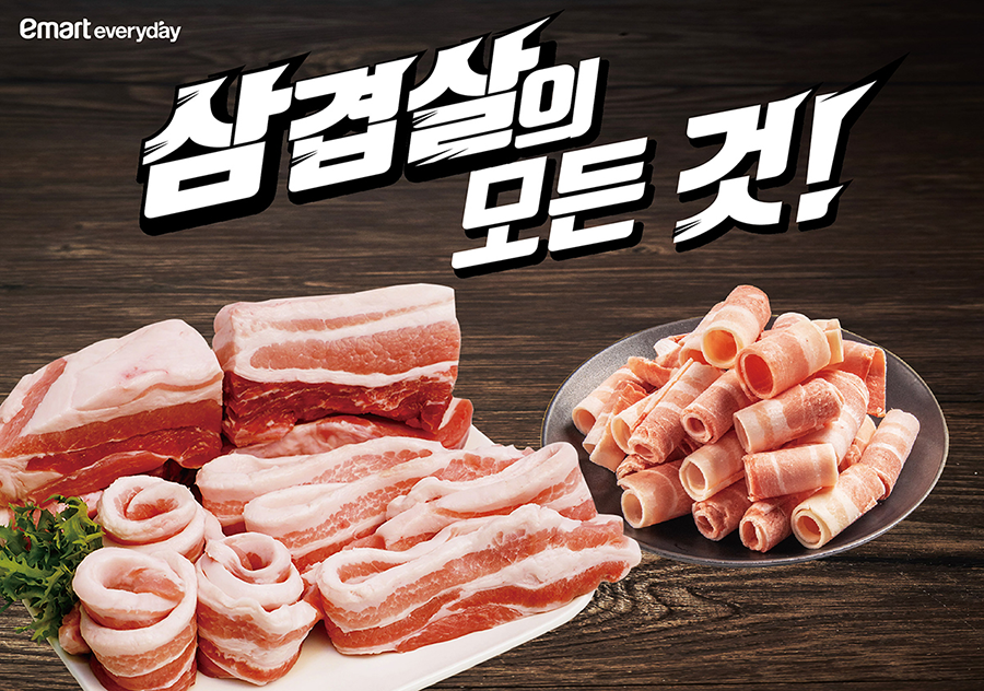 오늘 저녁 메뉴가 고민되시나요? 이마트의 신선한 삽겹살로 맛있는 한 끼를 준비해 보세요!
