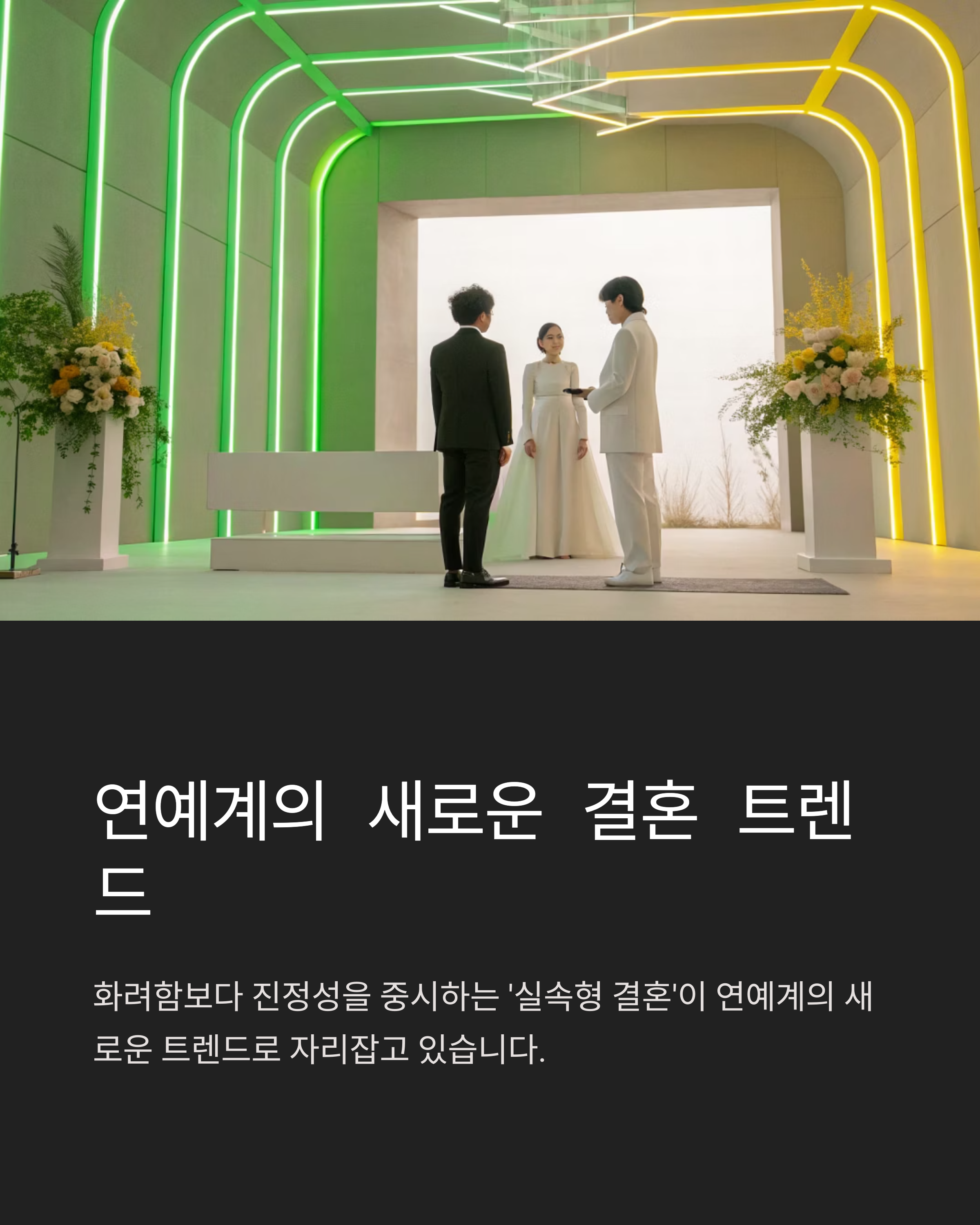 조용한 혼인신고, 비공개 결혼, 예능을 통한 공개 등이 주요 트렌드입니다.