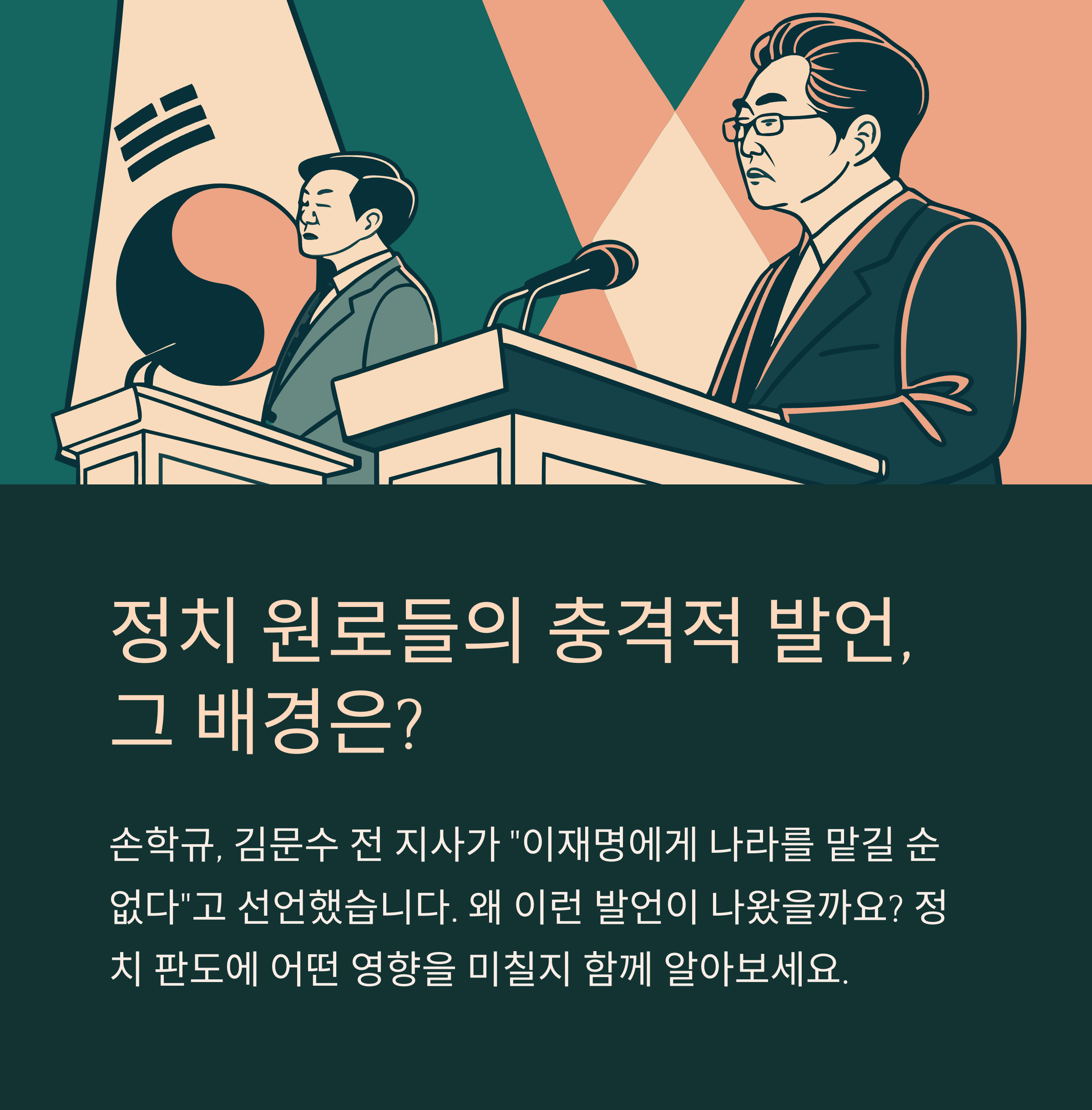 솔직히 말해서, 뉴스 헤드라인만 봐도 고개가 갸우뚱해질 때가 많잖아요? 특히 정치 이야기는 더더욱 그런데요. 최근 손학규, 김문수 전 지사님들의 발언이 정말 큰 화제였죠. "이재명에게 나라를 맡길 순 없다"는 메시지는 많은 분들에게 정치적 해석을 불러일으켰습니다. 저도 이 소식을 접하면서 '과연 어떤 배경과 의도가 있을까?' 궁금했거든요. 오늘은 이 두 분의 지지 선언이 우리 정치에 어떤 의미를 가지는지, 그리고 앞으로 어떤 변화를 가져올지 함께 살펴보겠습니다. 😊