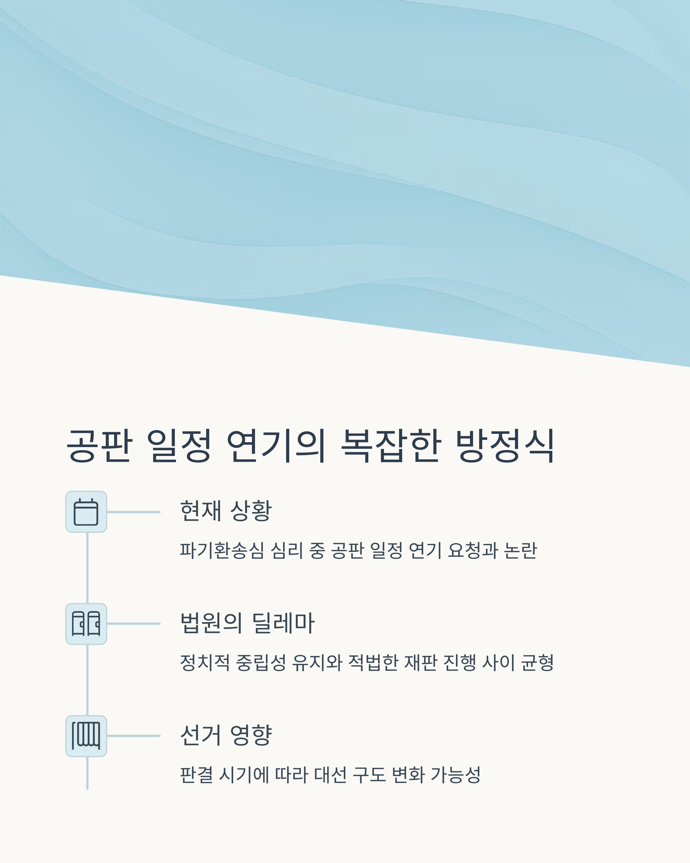 재판 일정 연기에 대해 여야의 반응은 극명하게 엇갈립니다. 더불어민주당은 “국민의 참정권을 위한 정상적 결정”이라고 환영한 반면, 국민의힘은 “정치 재판의 정점”이라며 강하게 비판했습니다. 특히 보수 진영에서는 법원이 정치적 중립성을 지키지 못했다고 주장하며, 공판 연기의 정당성에 의문을 제기하고 있습니다.