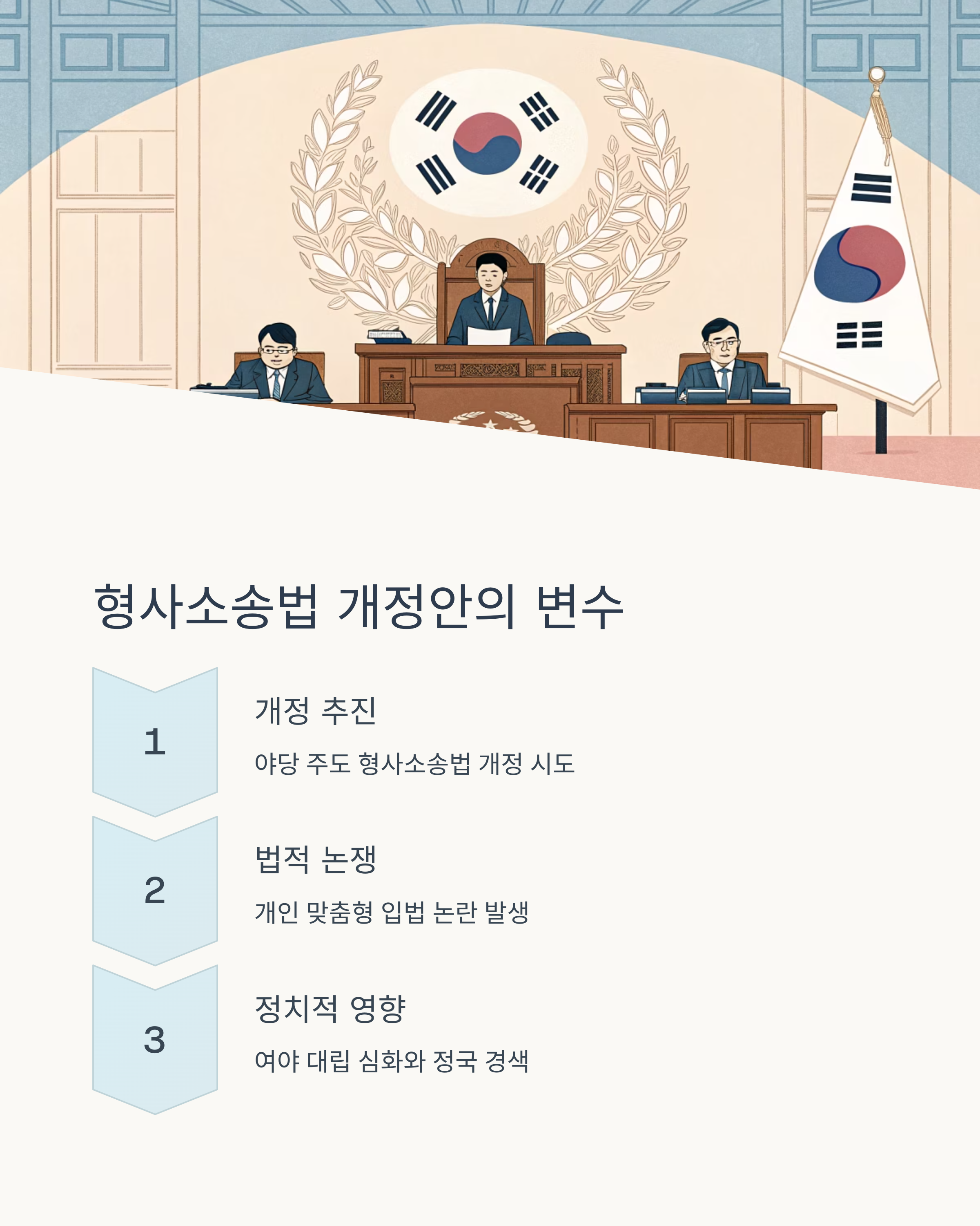 최근 국회에서는 대통령 당선인의 재판 진행을 일시 중단시키는 형사소송법 개정안이 논의되고 있습니다. 이는 “국민의 선택을 받은 후보에게 행정력을 집중하게 하자”는 명분이지만, 실상은 정치인 보호용 입법이라는 비판도 제기되고 있습니다.