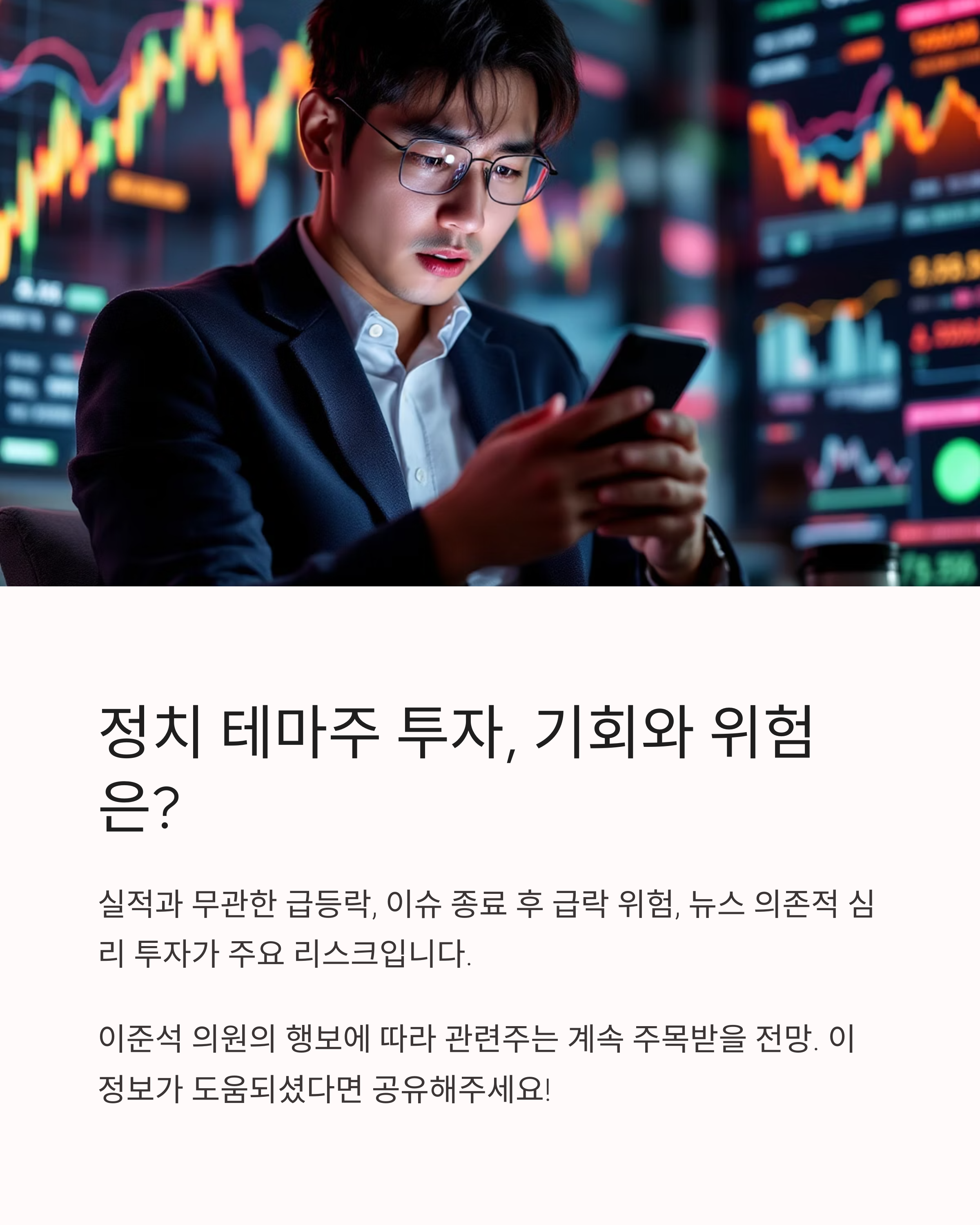 - "이준석 이슈 뜨자마자 급등, 역시 정치 테마주는 반응 빠르네"