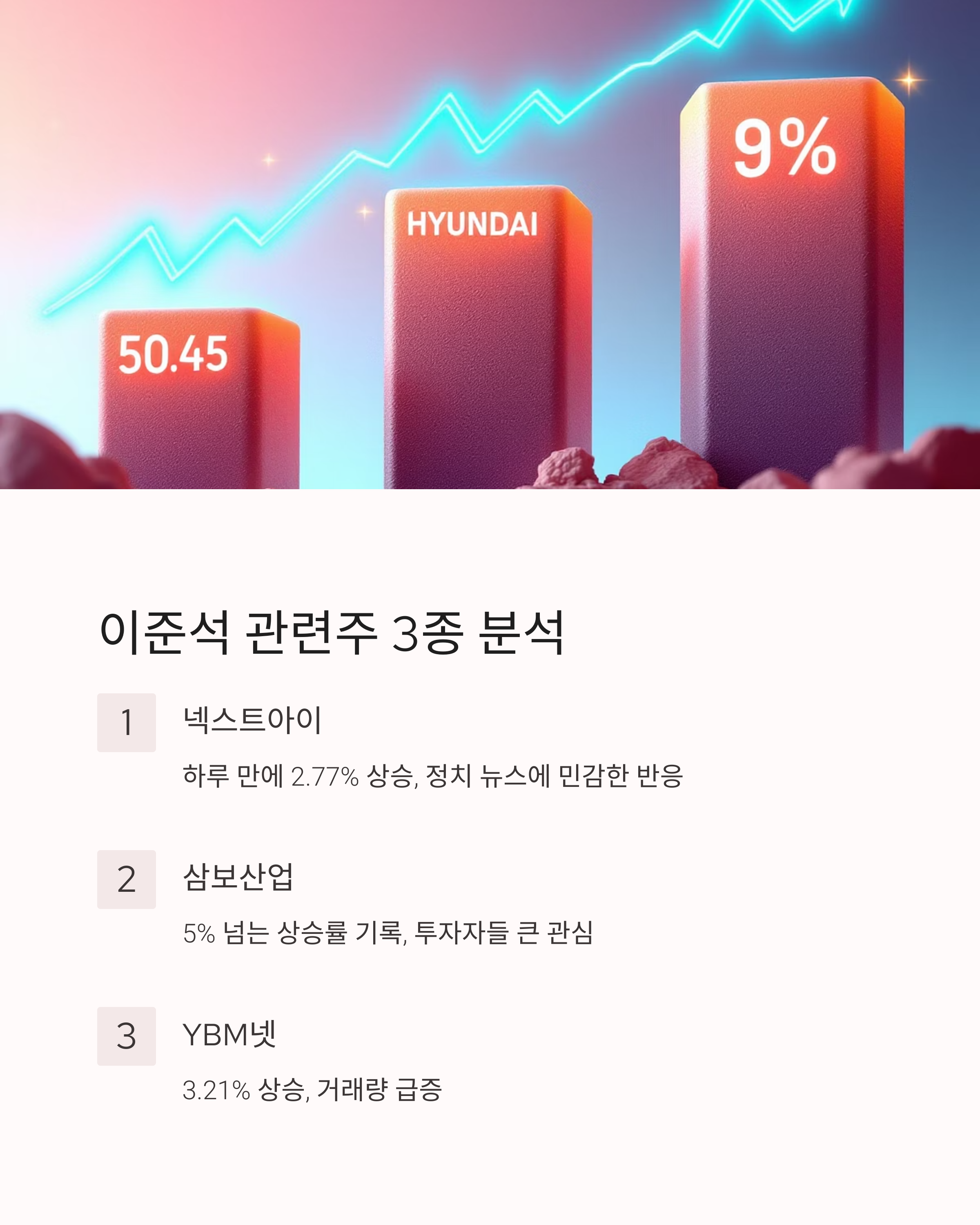안녕하세요, 투자자 여러분. 요즘 주식시장이 참 말도 많고 탈도 많죠? 저도 매일 아침 뉴스를 보며 어떤 주식이 움직일지 눈치게임하느라 정신이 없네요. 그런데 이번 주는 좀 달랐어요. 이준석 개혁신당 의원의 대권 도전 선언 한 마디에 넥스트아이, 삼보산업, YBM넷이 들썩였거든요. 정치 테마주라는 게 늘 그렇듯 조심스러우면서도 궁금한 분야잖아요. 그래서 오늘은 그 이야기를 좀 해보려고 해요.
