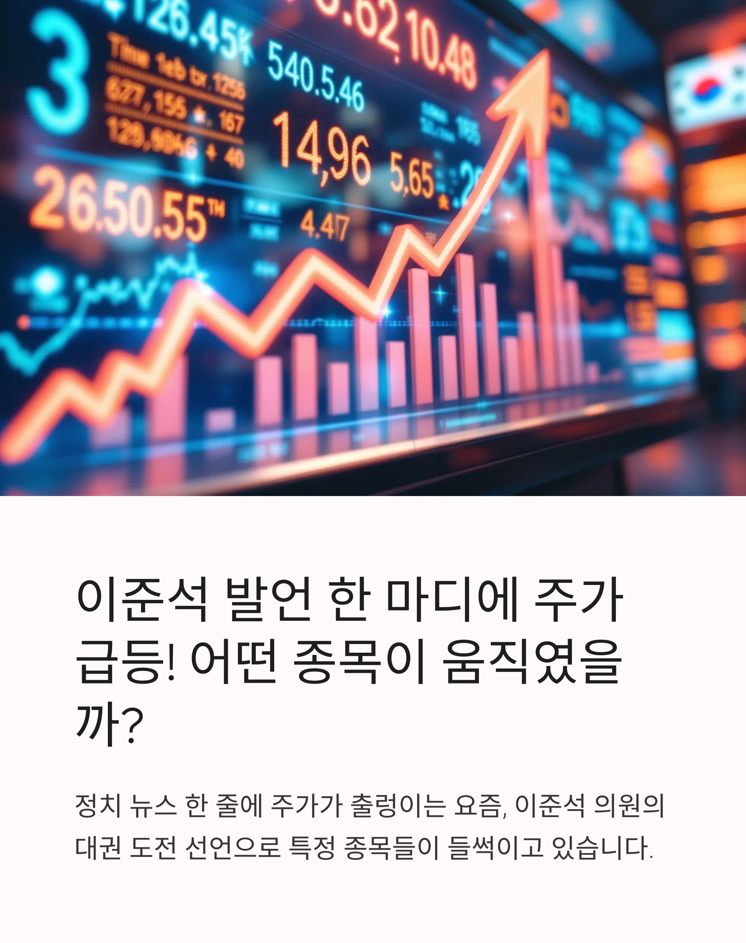 정치 뉴스 한 줄에 주가가 출렁이는 요즘, 이준석 의원의 발언 하나로 시장이 뜨겁게 달아오르고 있습니다.